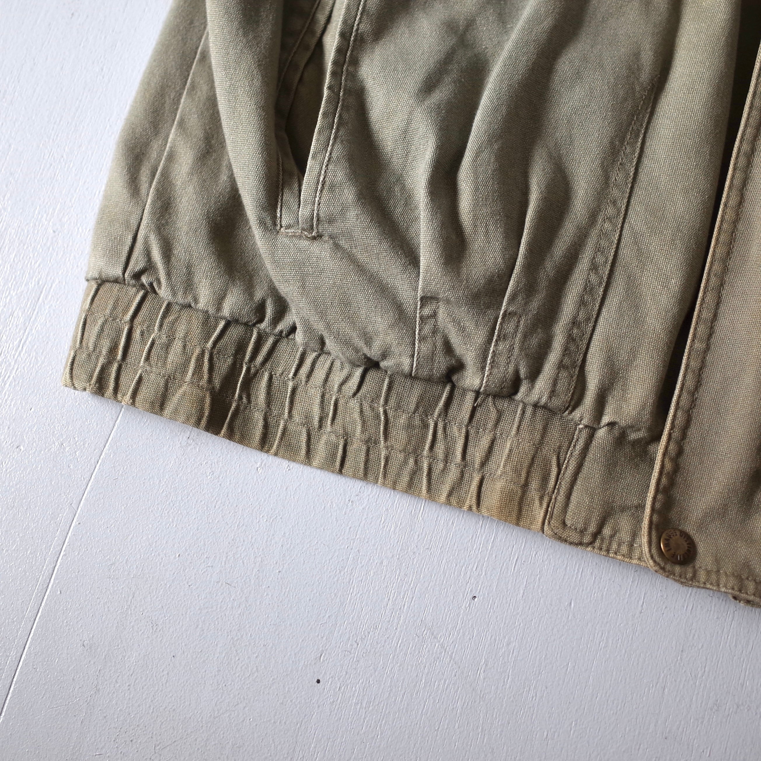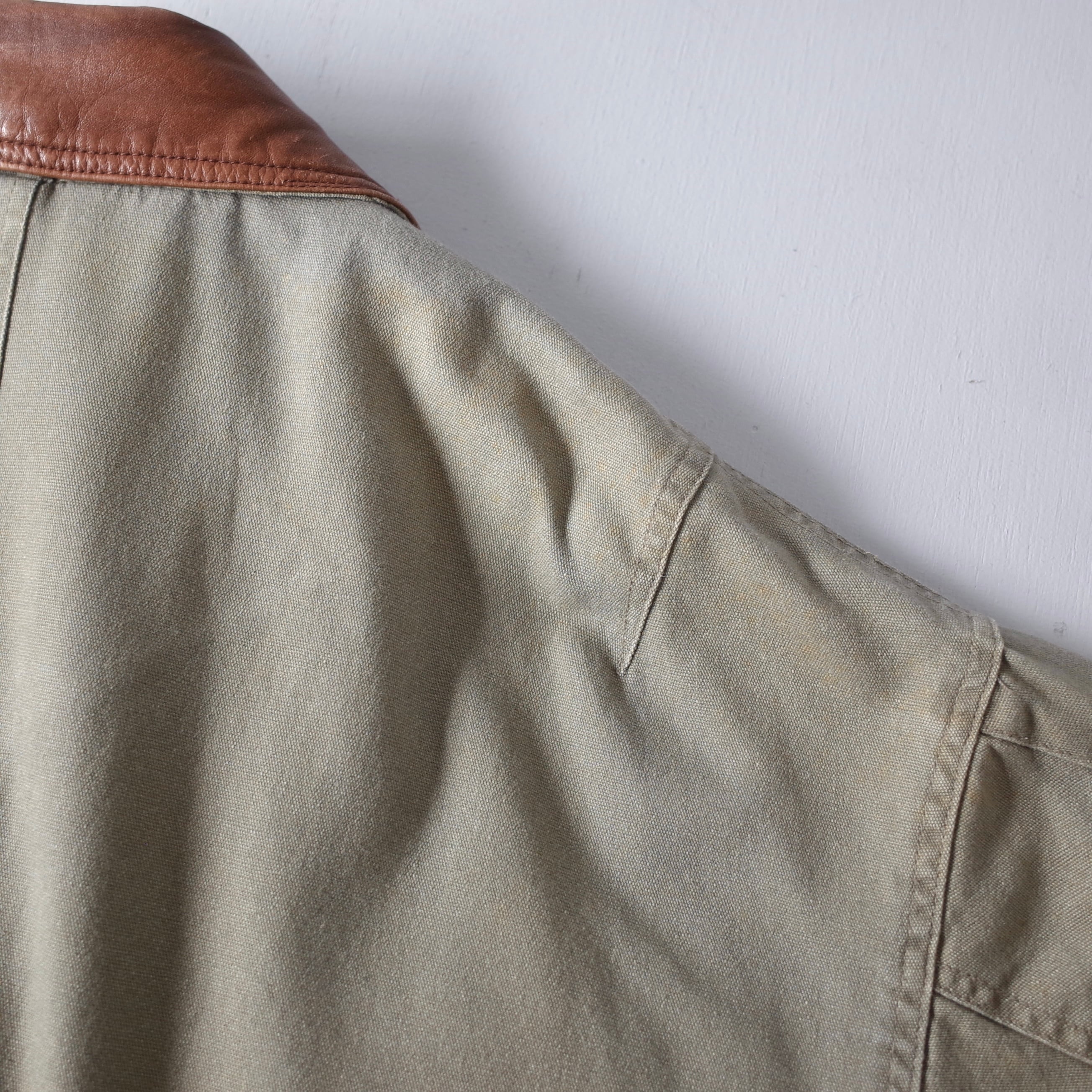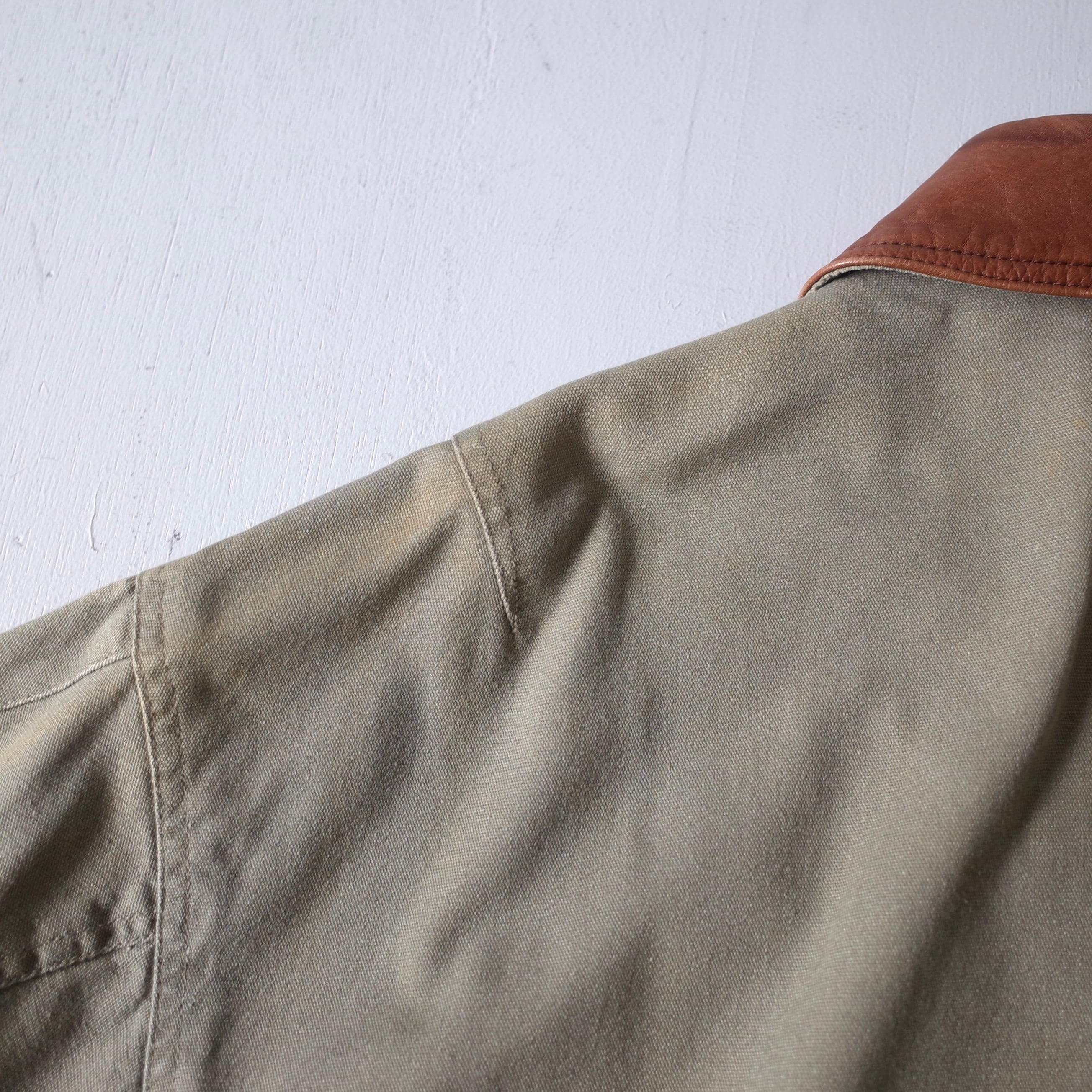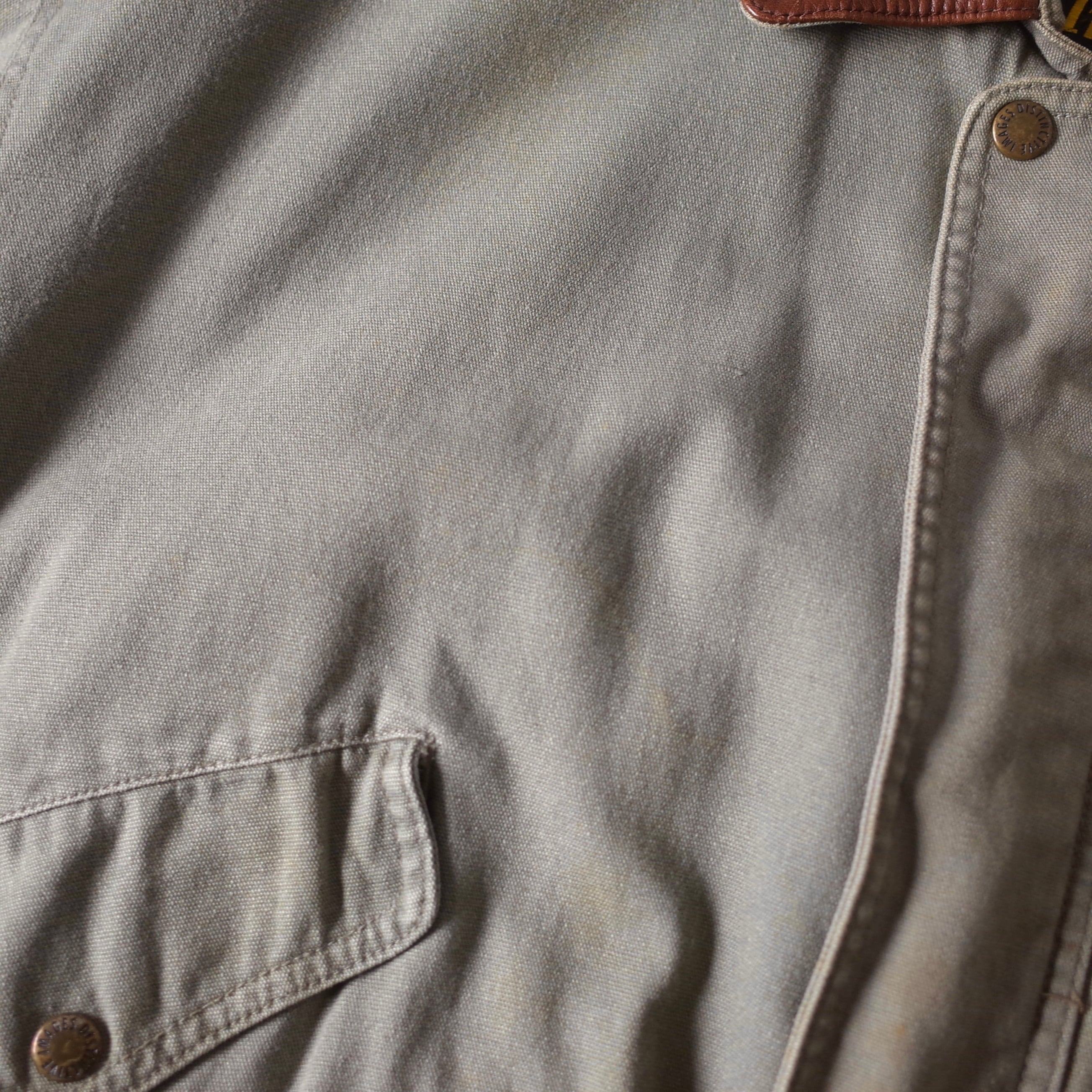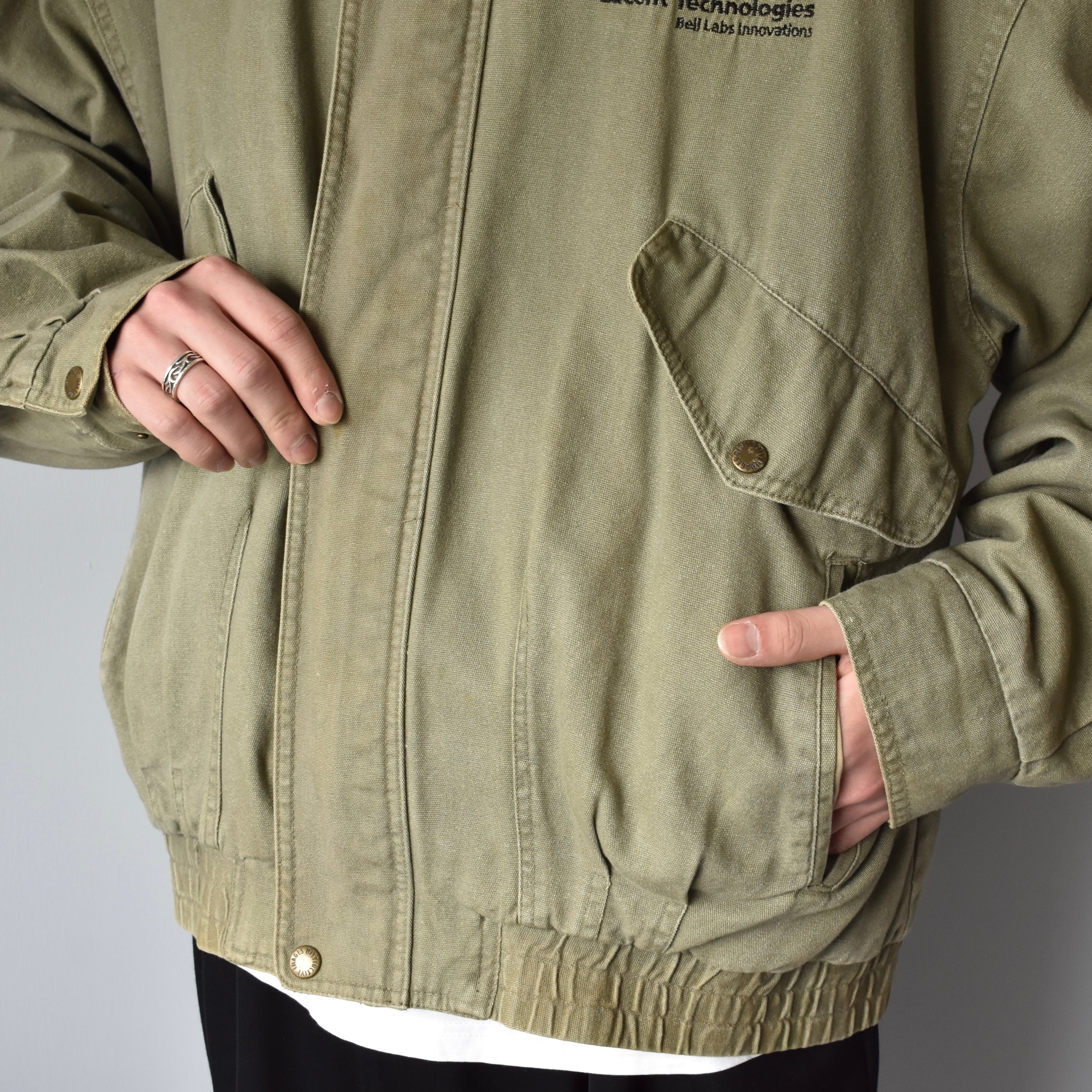 米国IT企業“Lucent Technologies”のロゴ刺繍が胸元に施された一着。たっぷりした身幅に対して着丈は長すぎずバランスの取れたシルエットとなっております。本革襟が全体の印象を引き締め、羽織るだけで様になります。