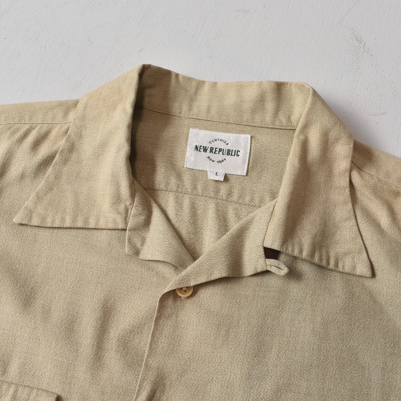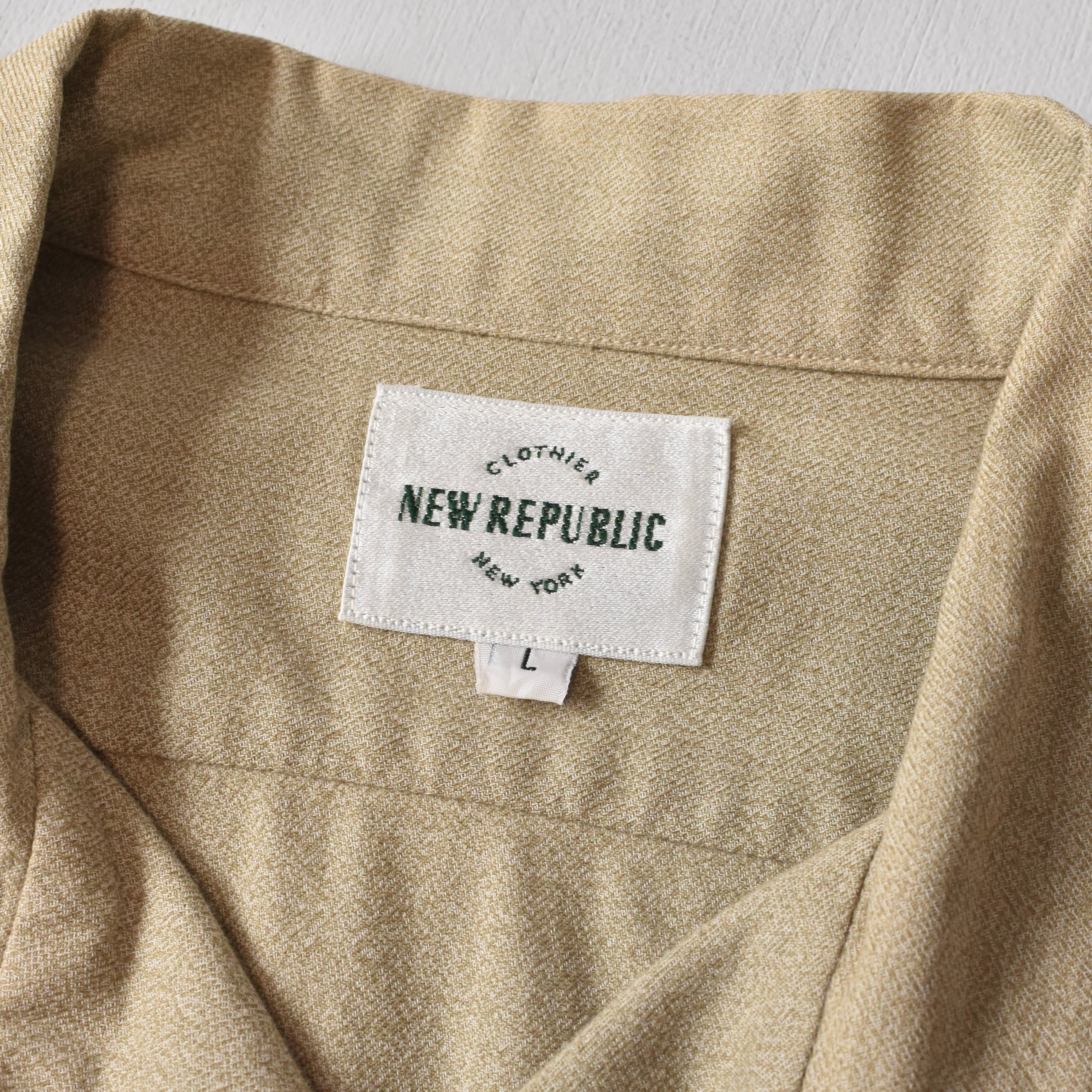 アメリカンクラシックを踏襲する、ヴィンテージ愛好家が手掛けたNY発ブランド"NEW REPUBLIC"。大変丁寧な袋縫いで仕上げた開襟仕様の襟デザインに、フラップ付の胸ポケットをはじめ、随所にヴィンテージのリスペクトを感じる拘りが詰まった一着。
