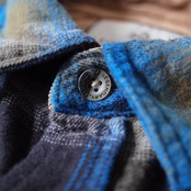 青×茶基調の配色が特徴的なオンブレチェック柄シャツ。