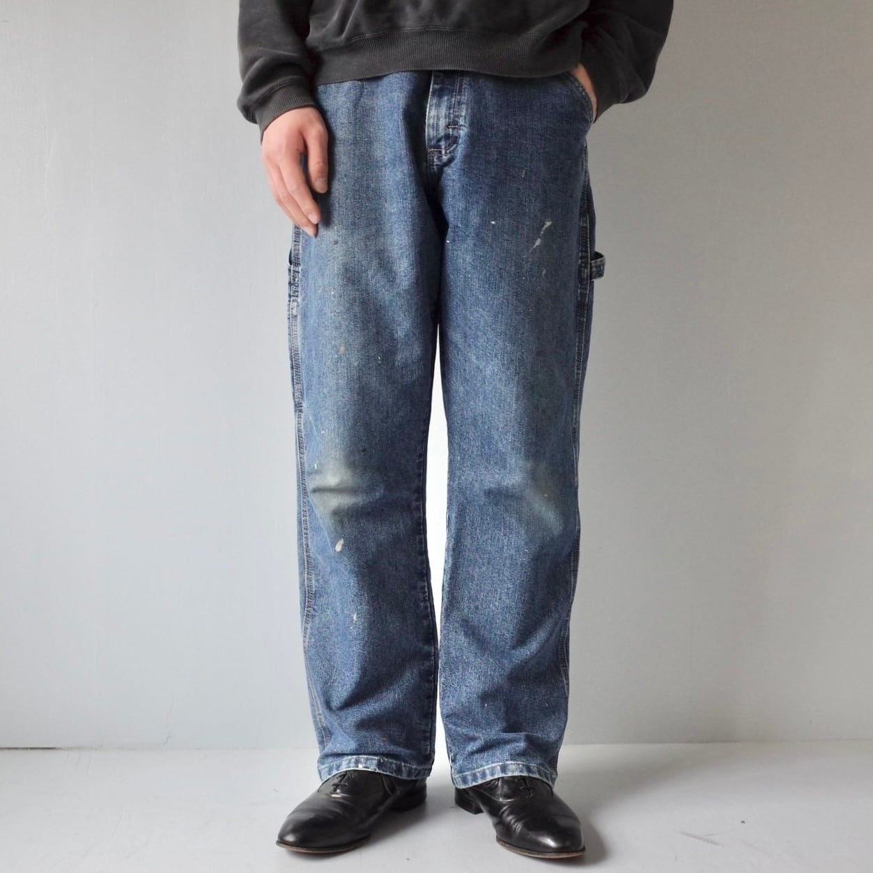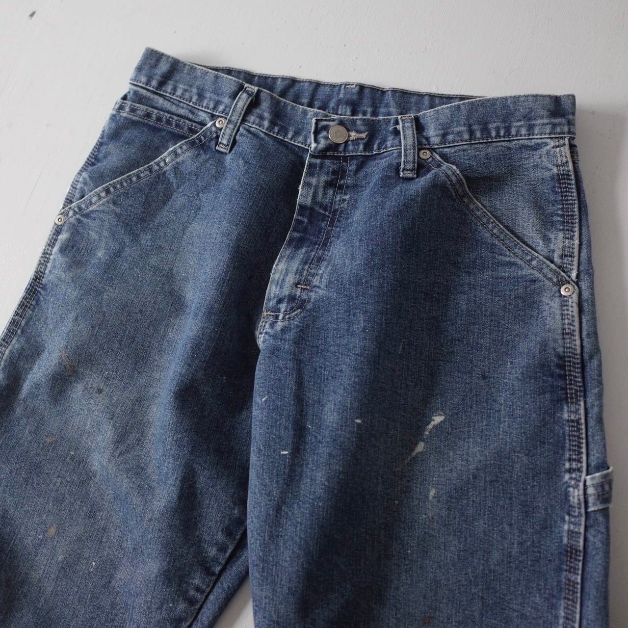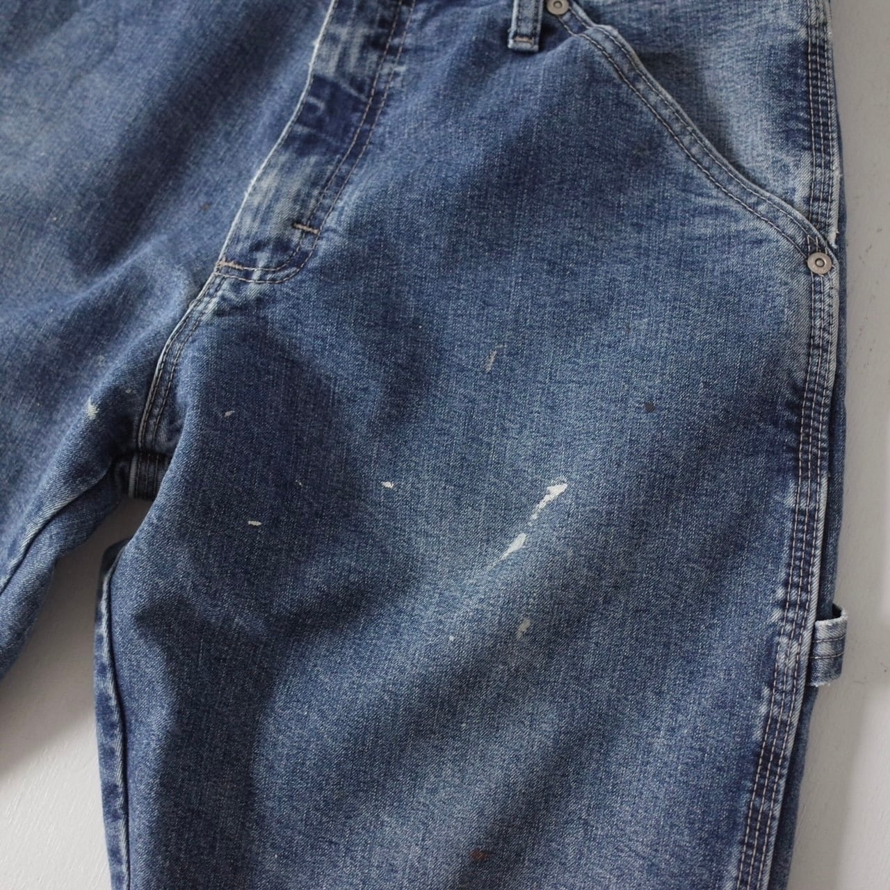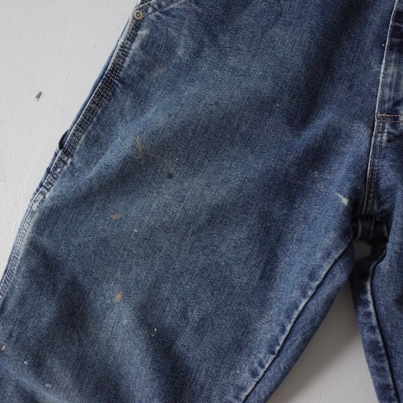 ブルーデニム生地に飛び散る自然なペンキ跡がたまらない