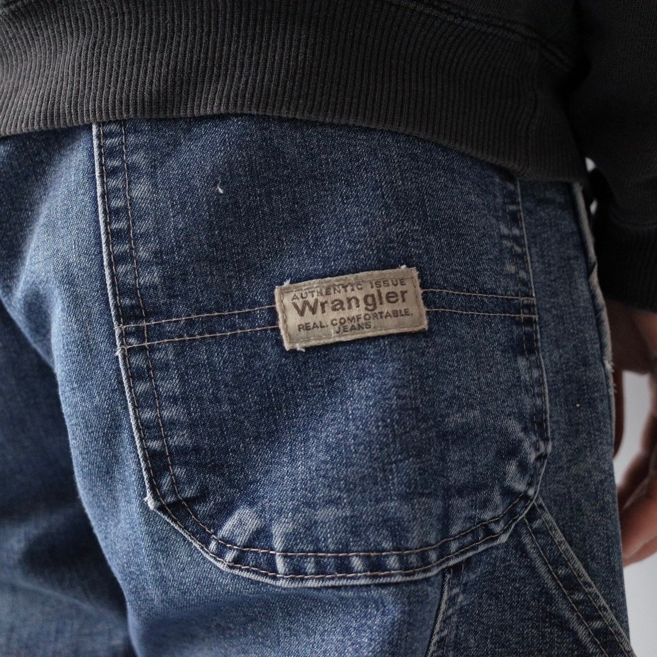 リアルワークの雰囲気漂う"Wrangler"のデニムパンツ。