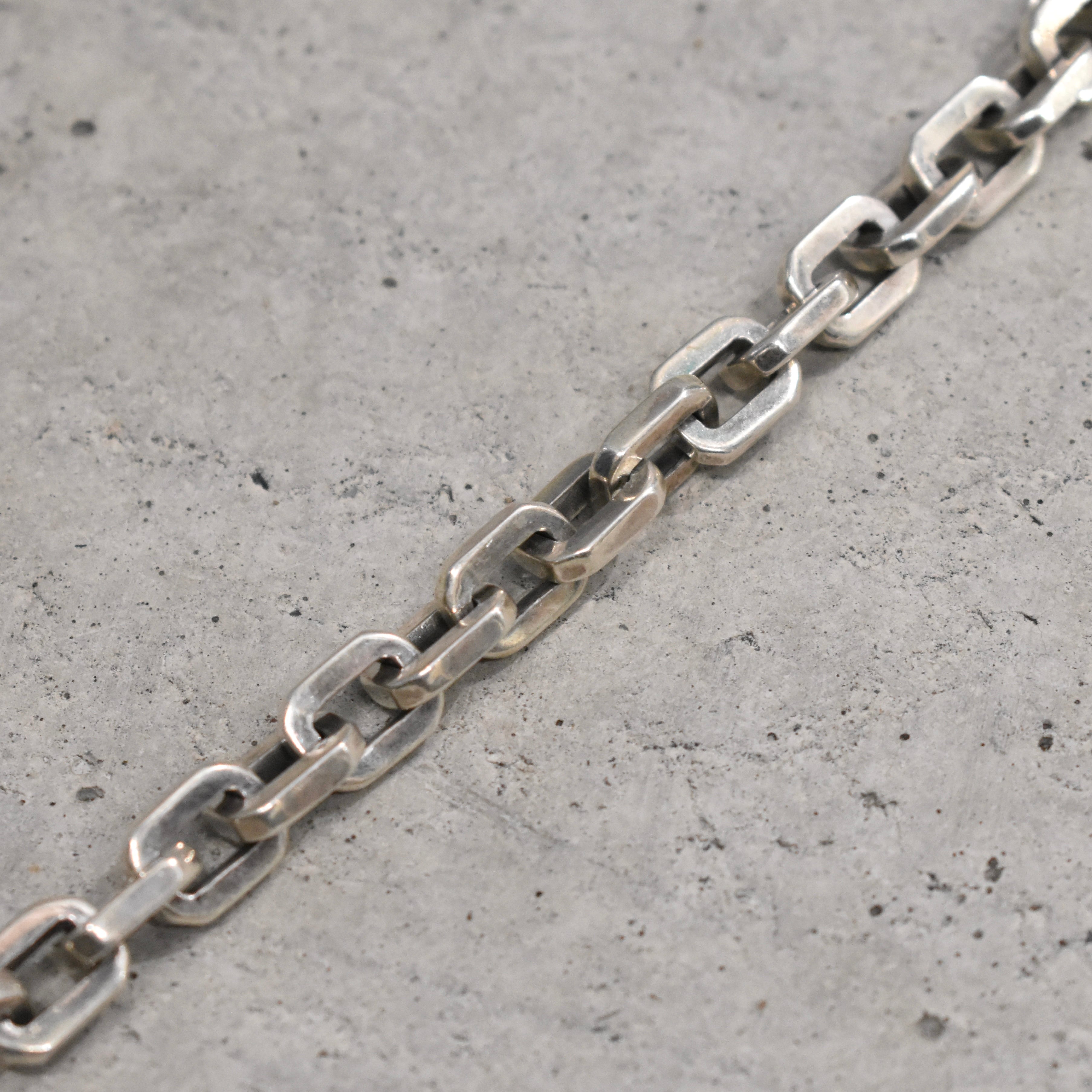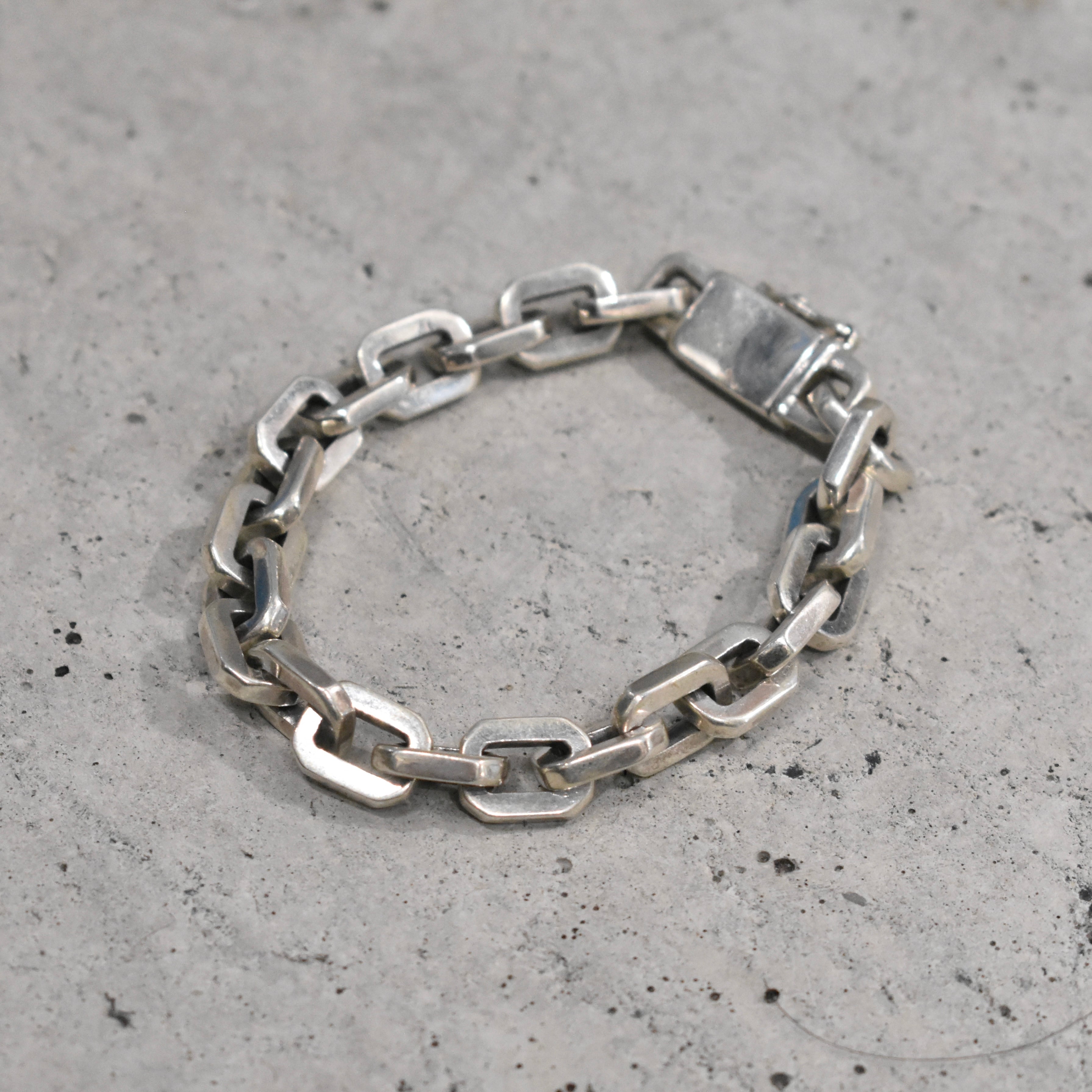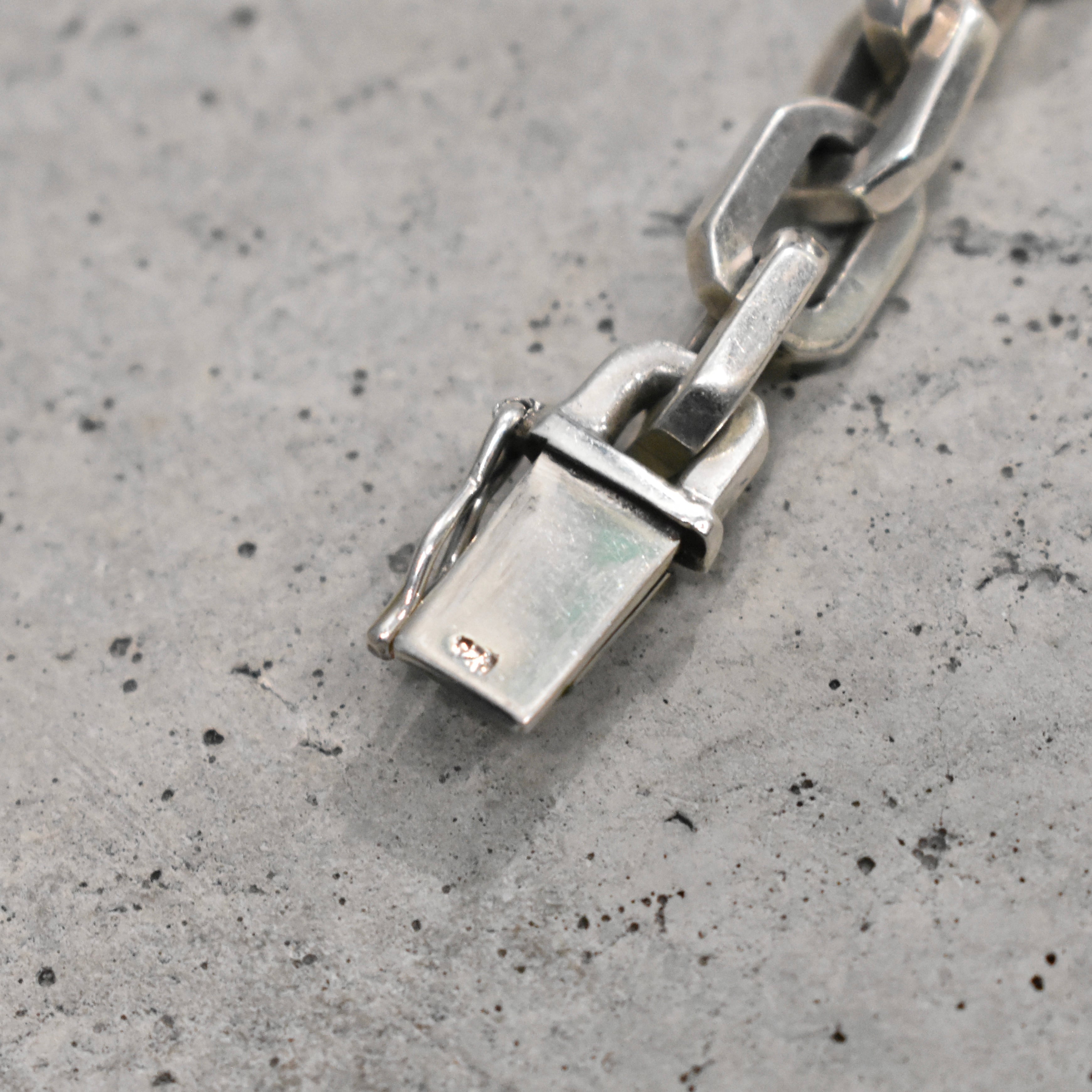一際存在感を放つゴツゴツしたハードウェアジュエリー。エンドパーツをはじめ、細部にわたり各所に拘り詰まった重量ある“SILVER925”チェーンブレスレット。