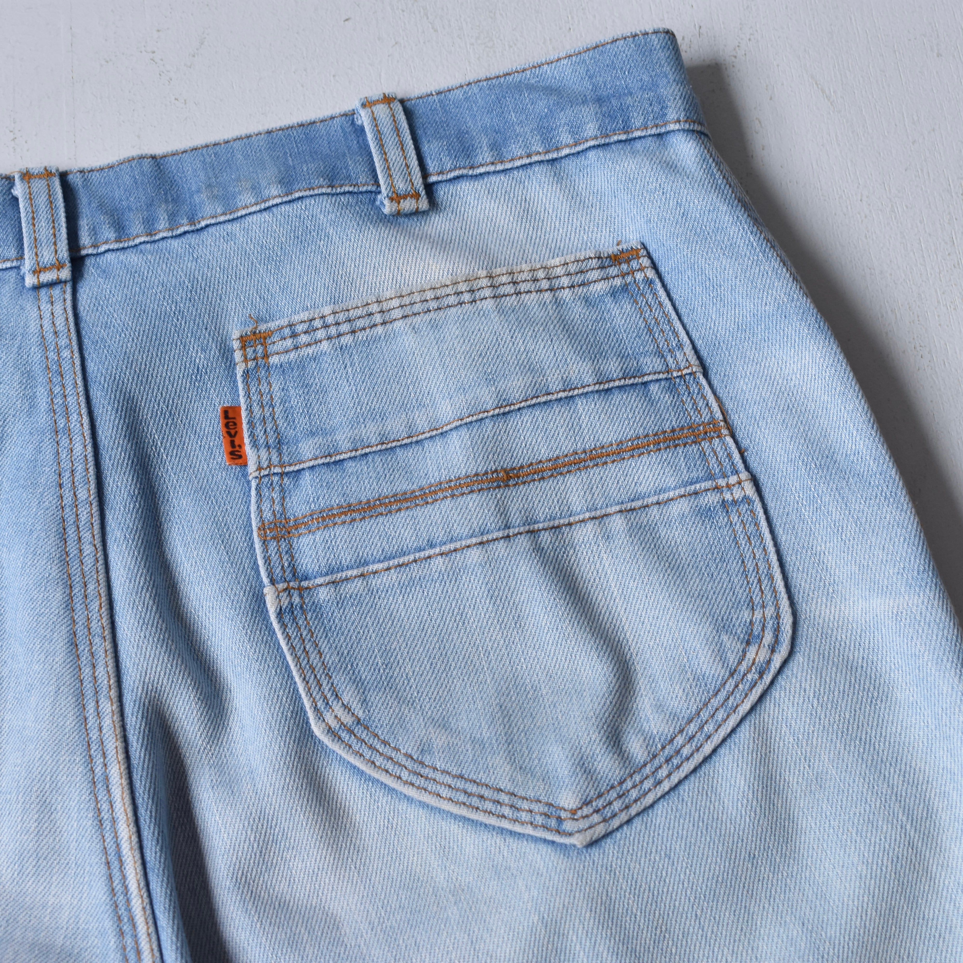 1970年代頃から存在したとされる、時代性が反映された"Levi's"のファッションライン『Movi'n On』シリーズ。センタープレスにローライズ、ブーツカットという当時の空気感をありありと伝えるヴィジュアルに惹かれる逸品。