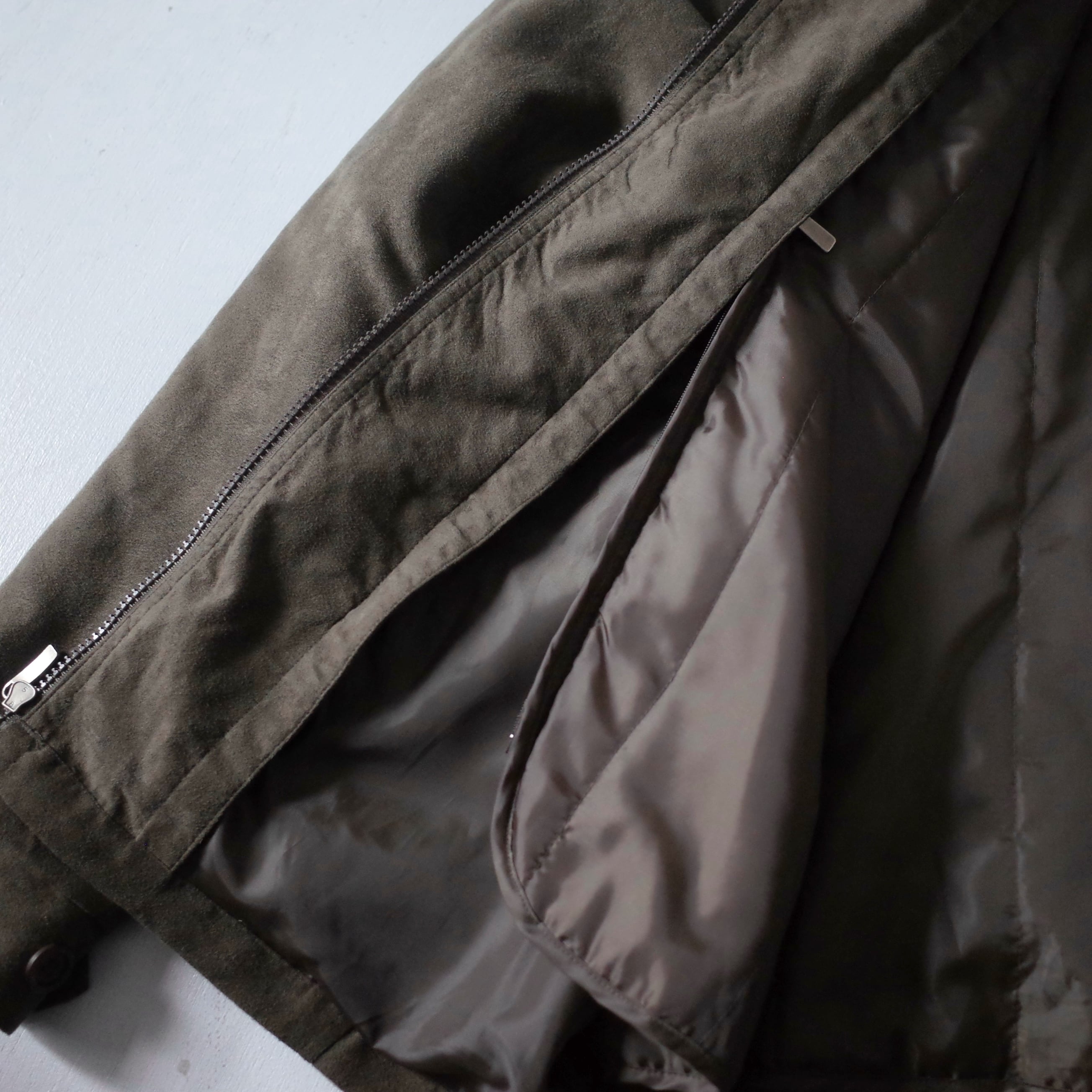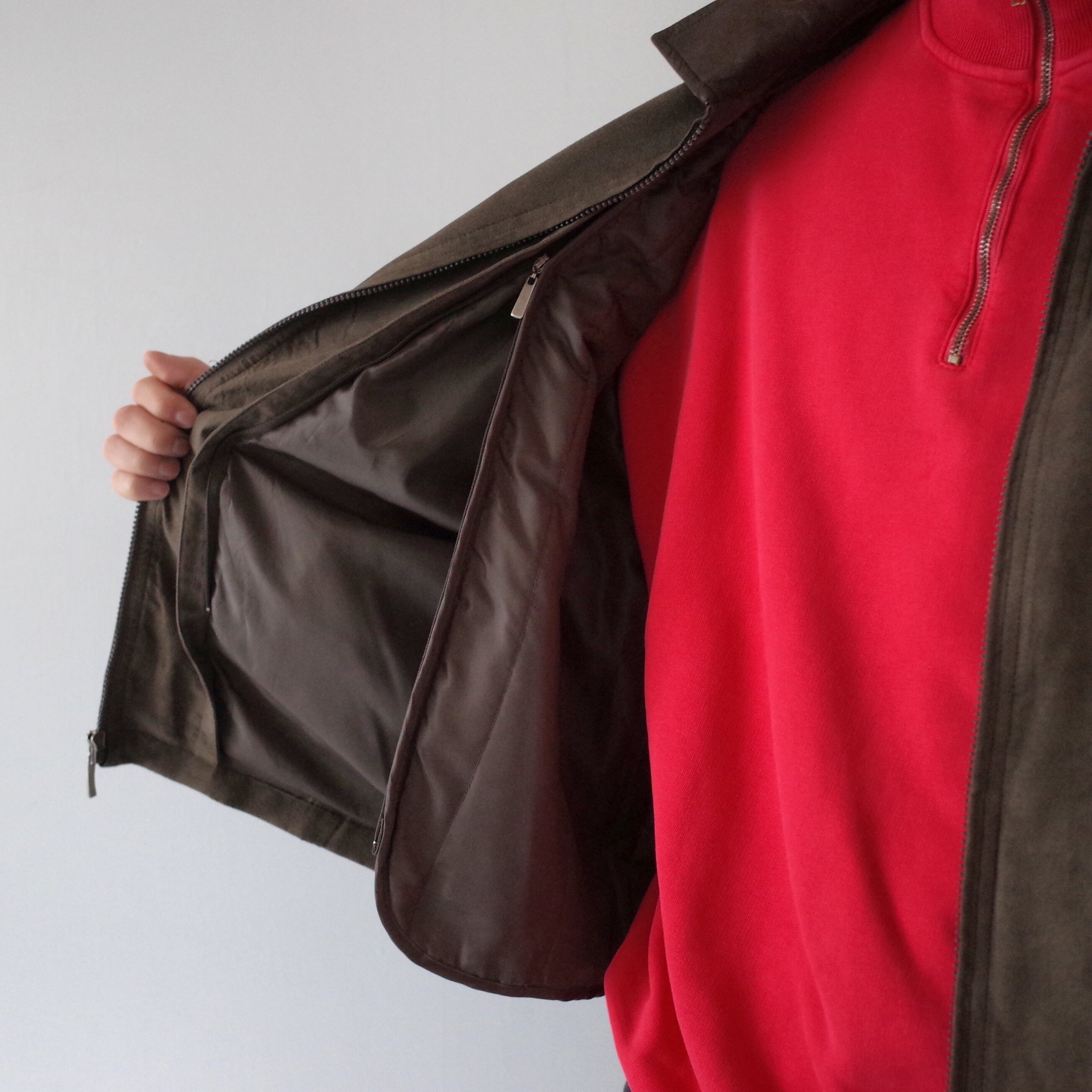 本革切替の襟デザインとピーチスキン生地採用のボディが