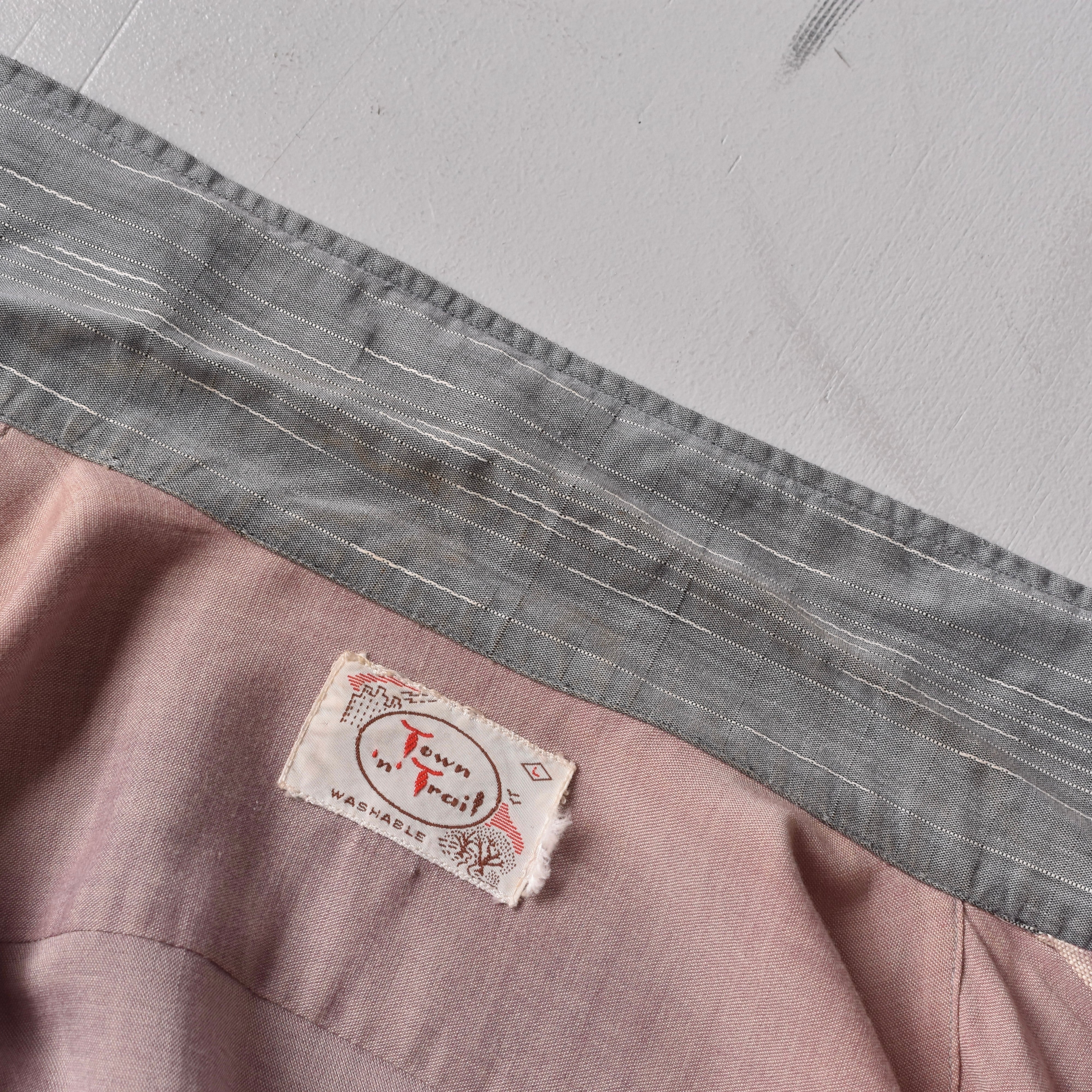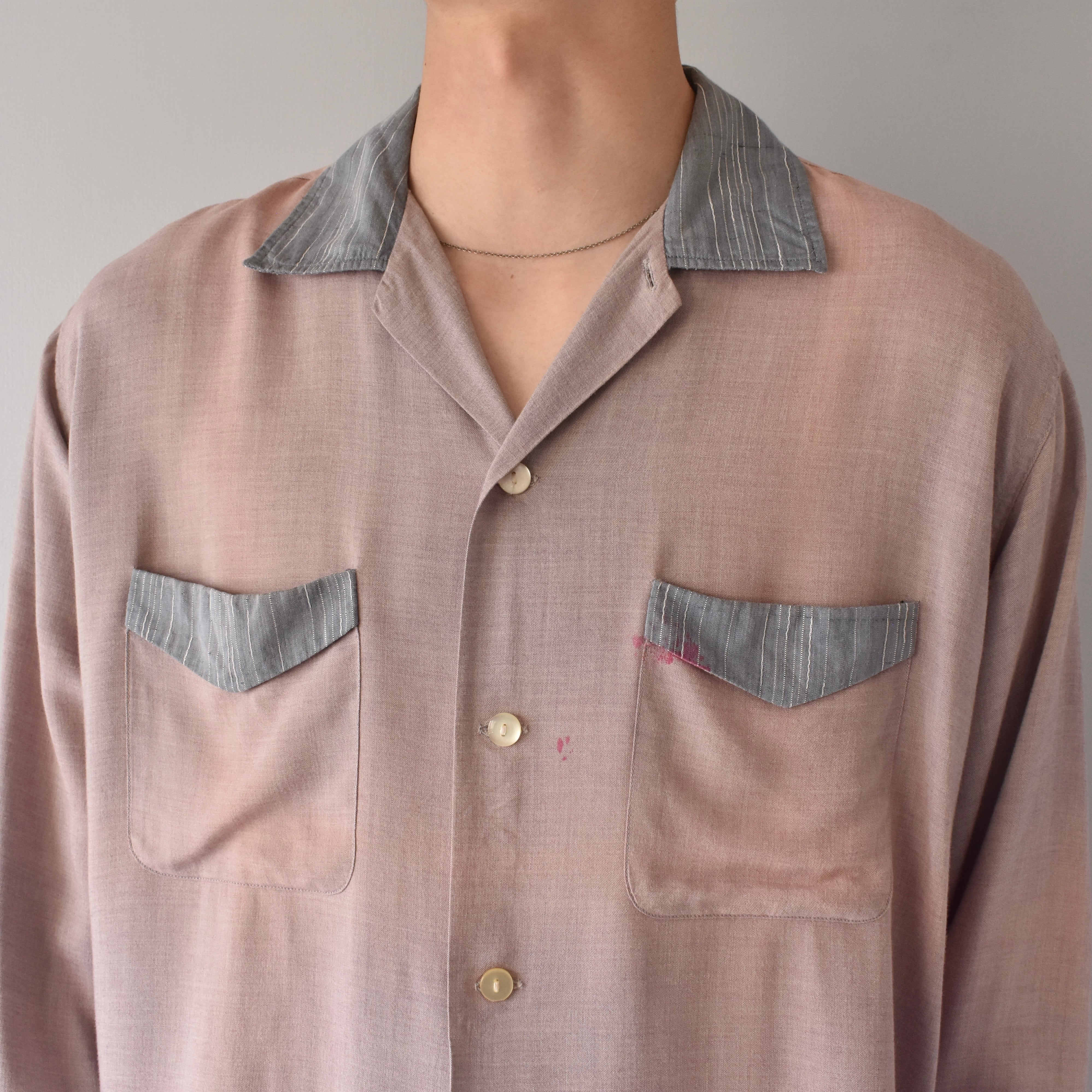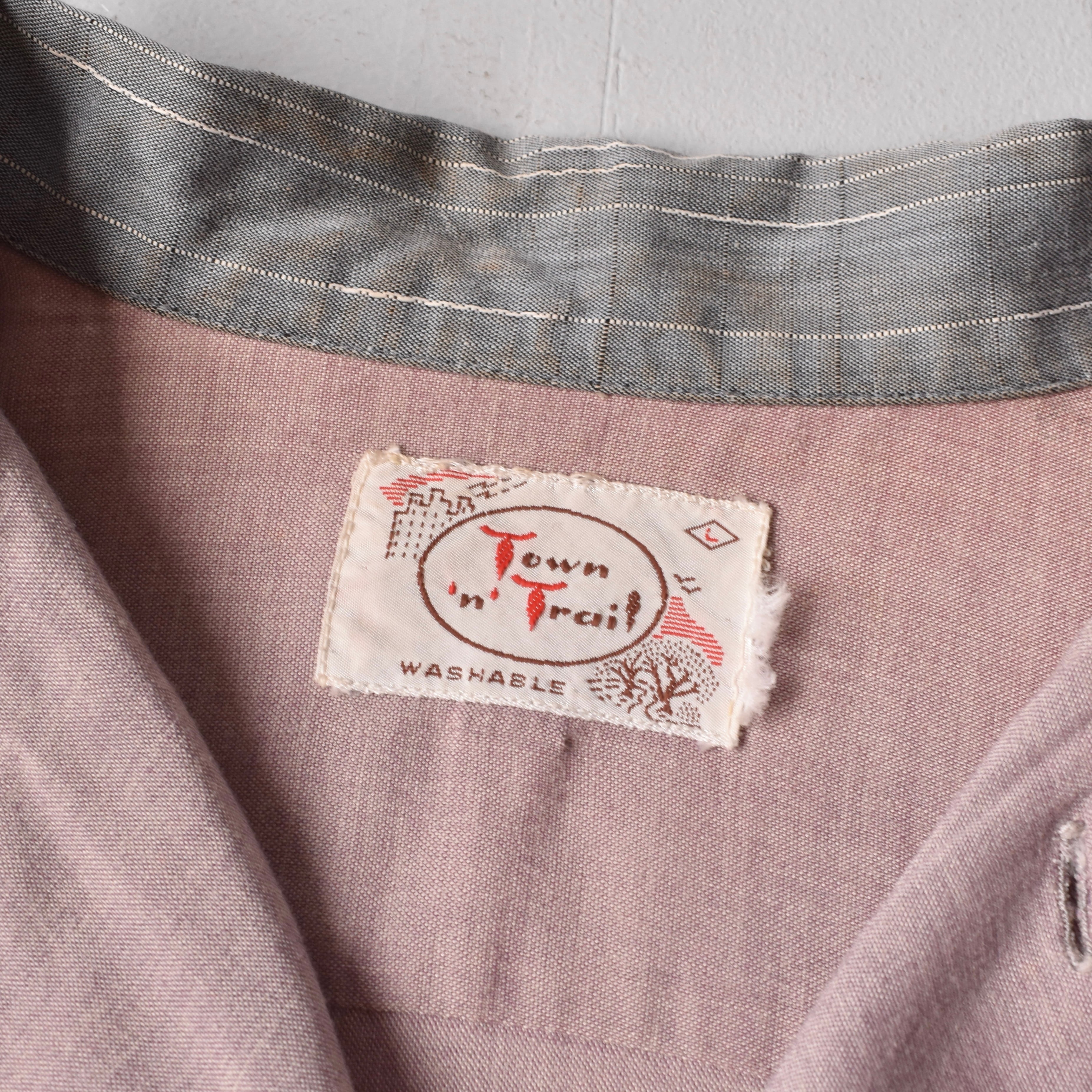 【VINTAGE】 “Town’n’Trail” 50’s~ Open Collar Design Rayon Shirt l/s