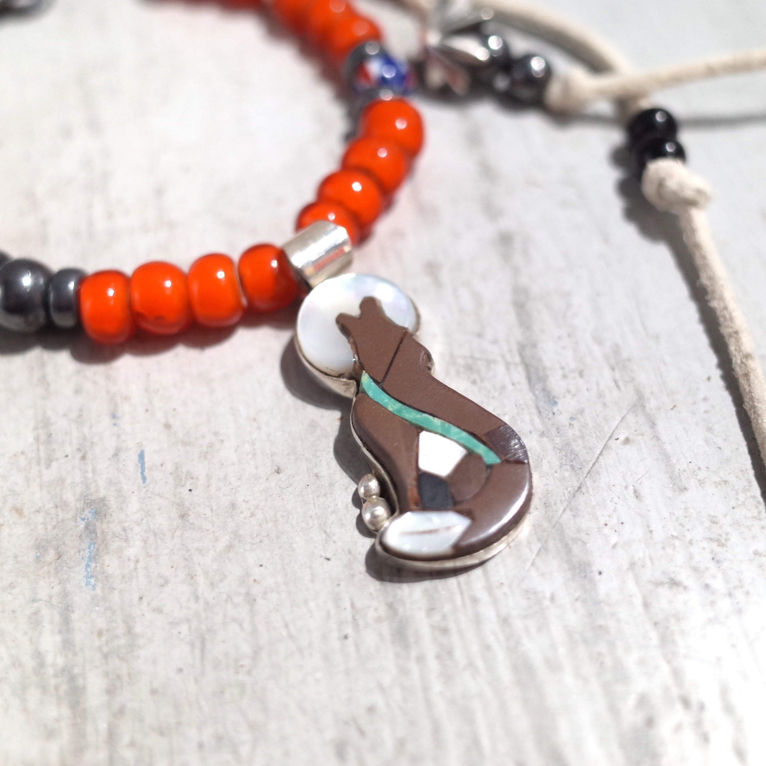 職人技光るインレイ技法より満月に吠える"コヨーテ”を