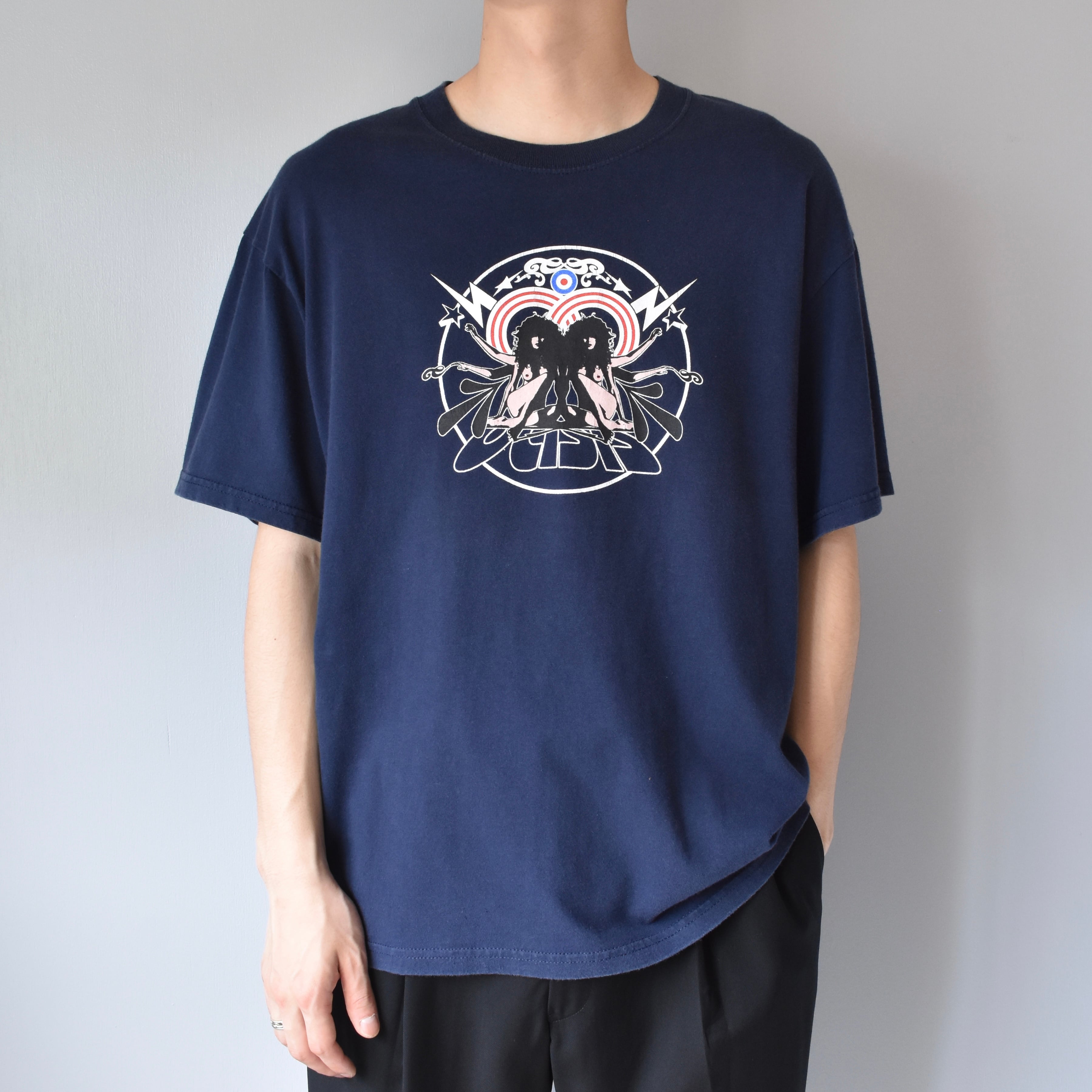 バンドTシャツを御紹介。ダークネイビーボディに描いた