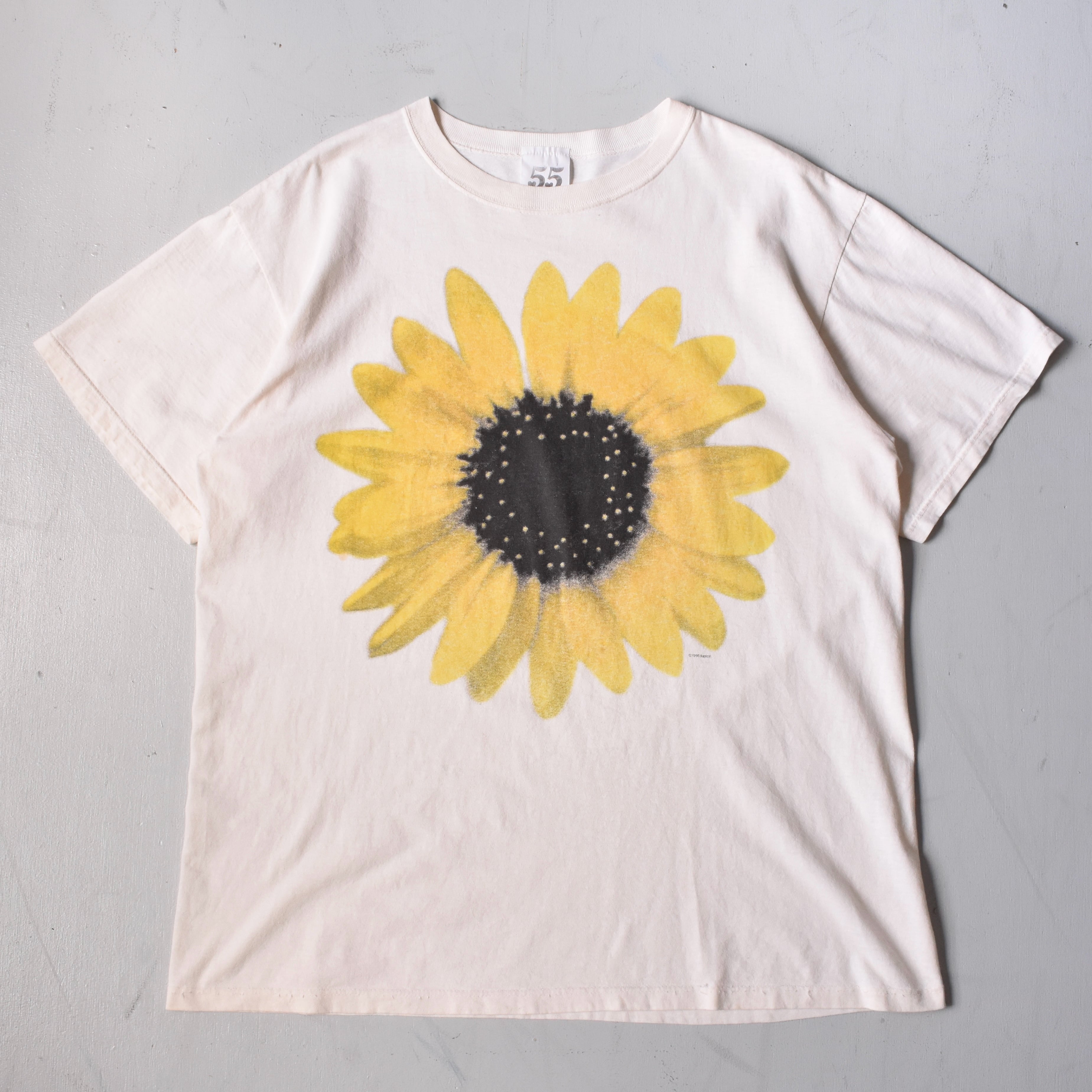 【VINTAGE】 “SUNFLOWER” 『55 NEW ST.』 90’s~ Made In USA Printed T-shirt s/s