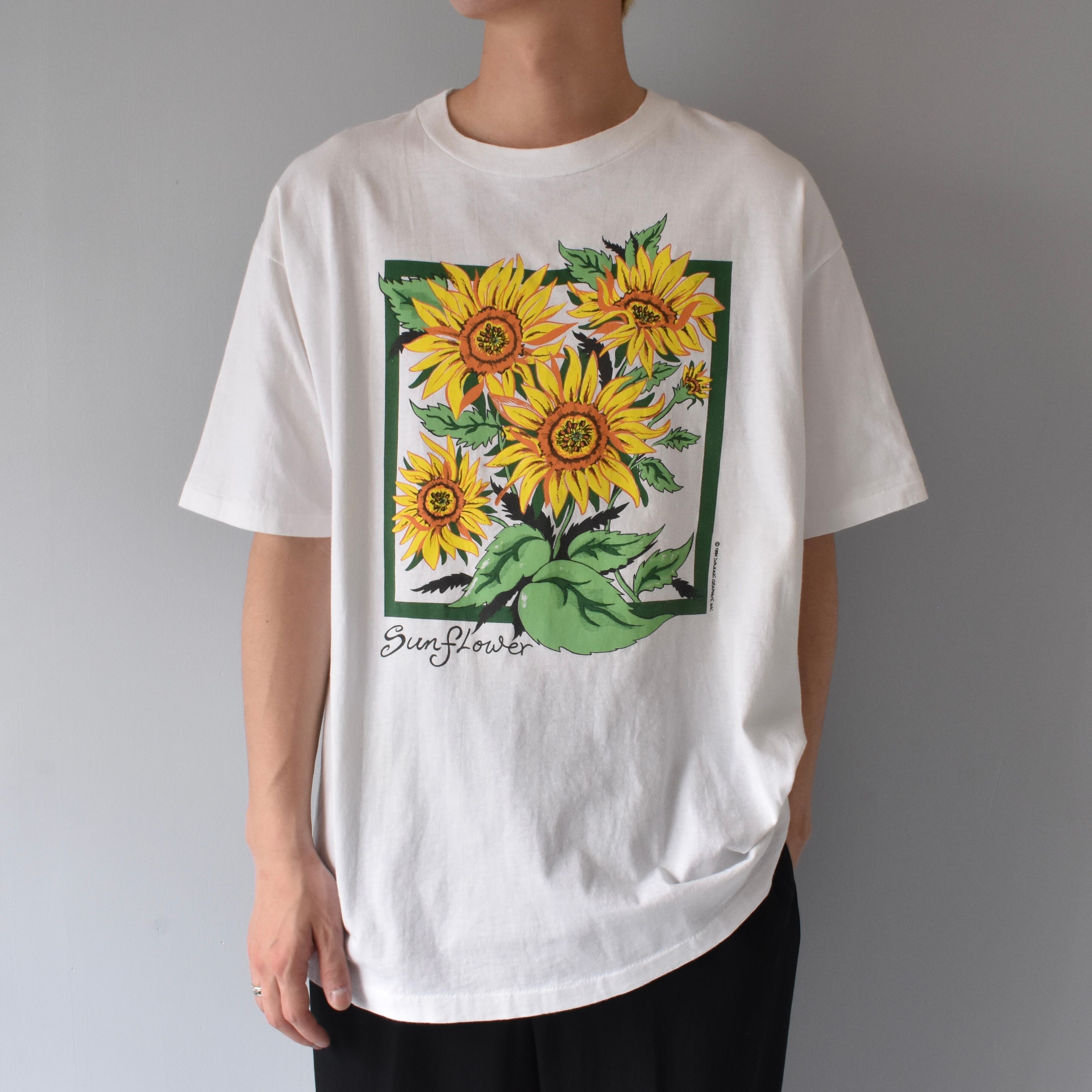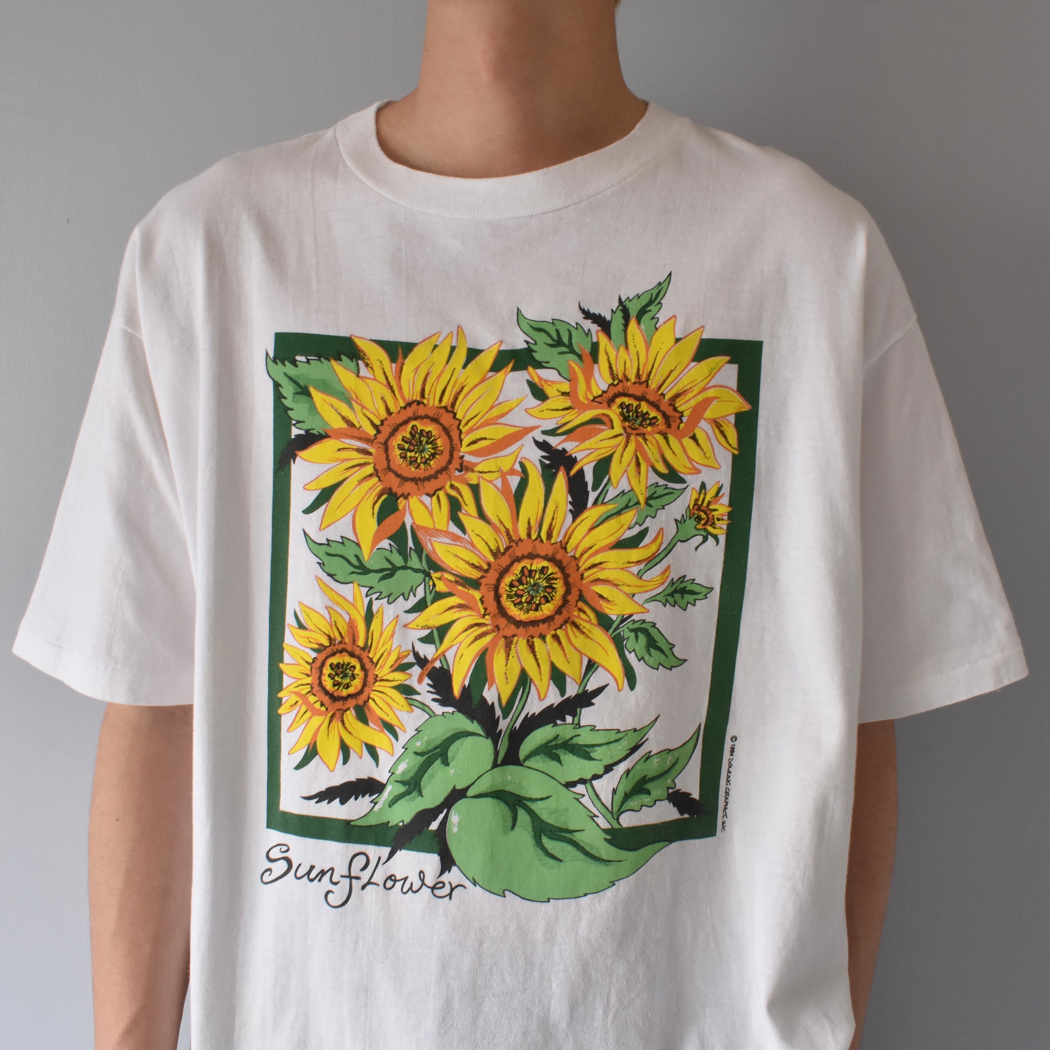 【VINTAGE】 “SUNFLOWER” 『DROWING GRAPHICS INC.』 90’s~ Made In USA Printed T-shirt s/s