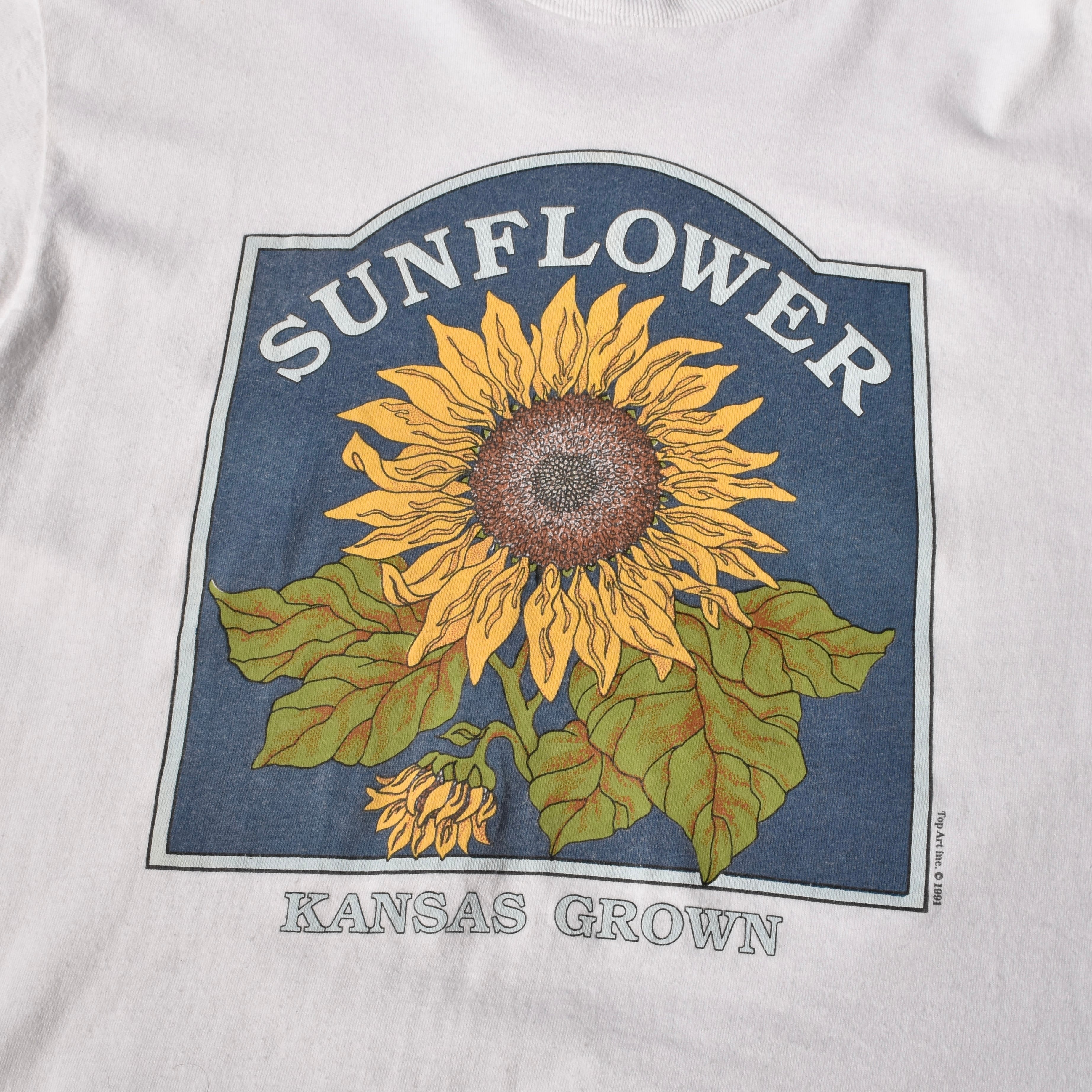 【VINTAGE】 “SUNFLOWER” 『KANSAS GROWN』 90’s~ Made In USA Printed T-shirt s/s