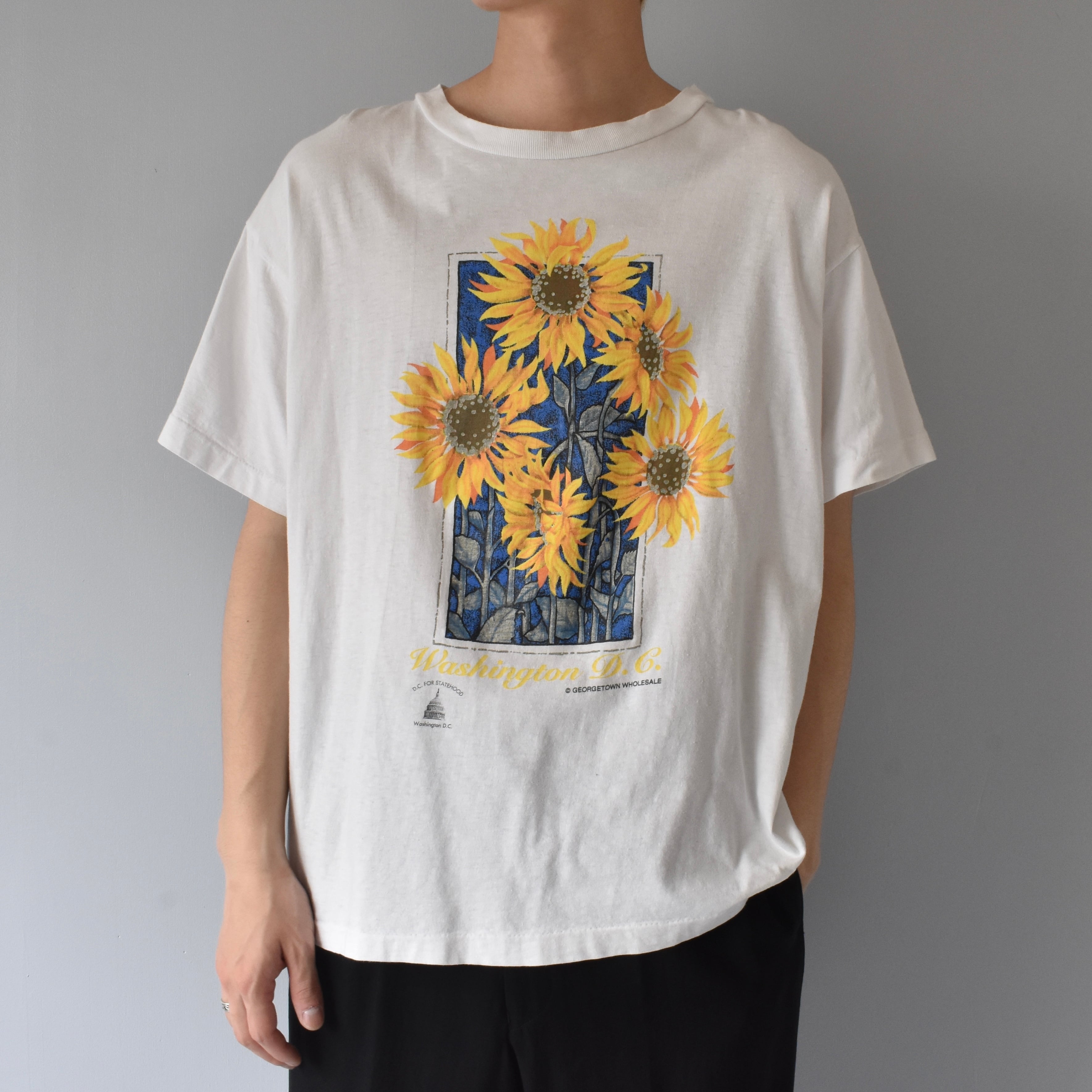 【VINTAGE】 “SUNFLOWER” 『Washington D.C』 90's~ Front Printed T-shirt s/s