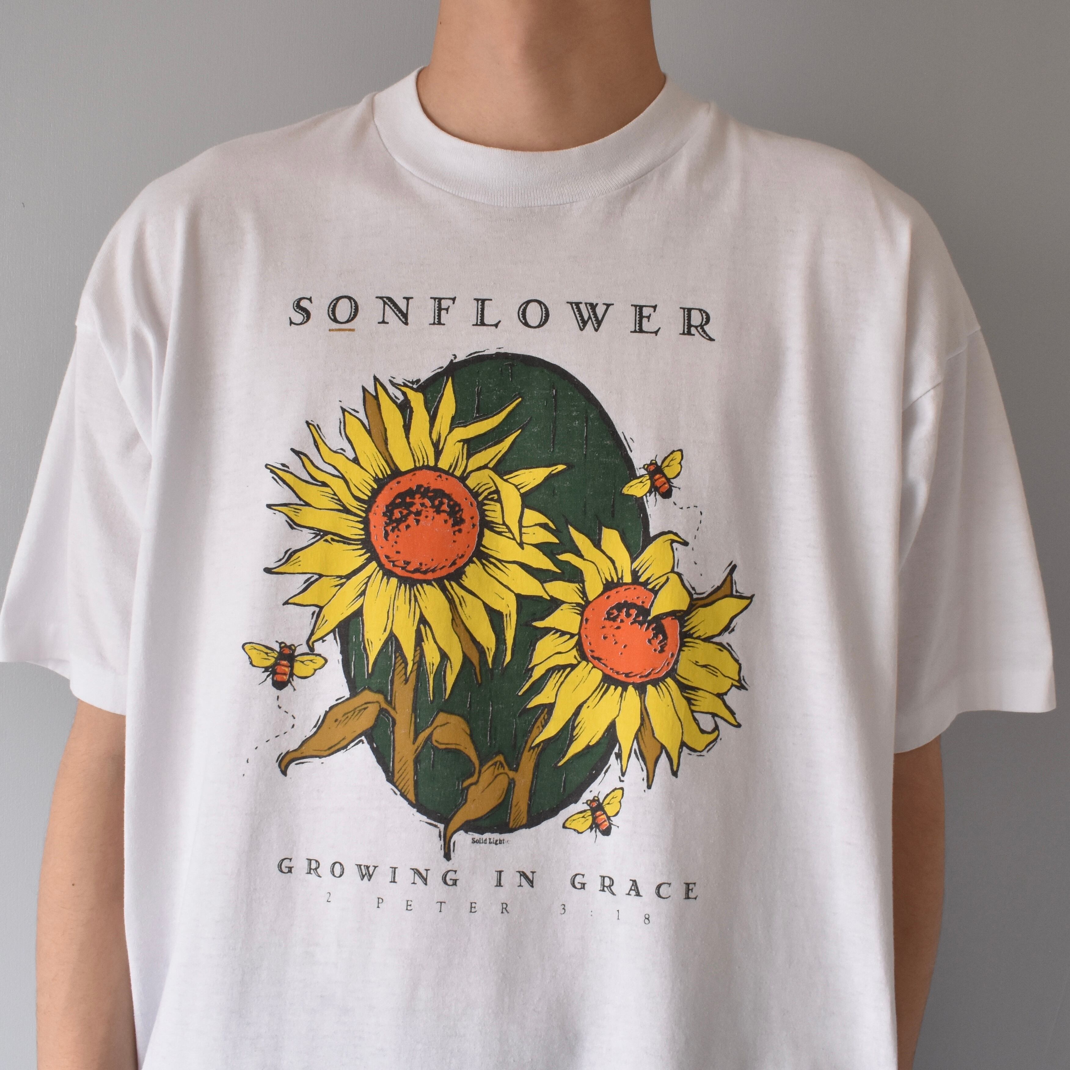 【VINTAGE】 “SUNFLOWER” 『GROWING IN GRACE』 90’s~ Front Printed T-shirt s/s