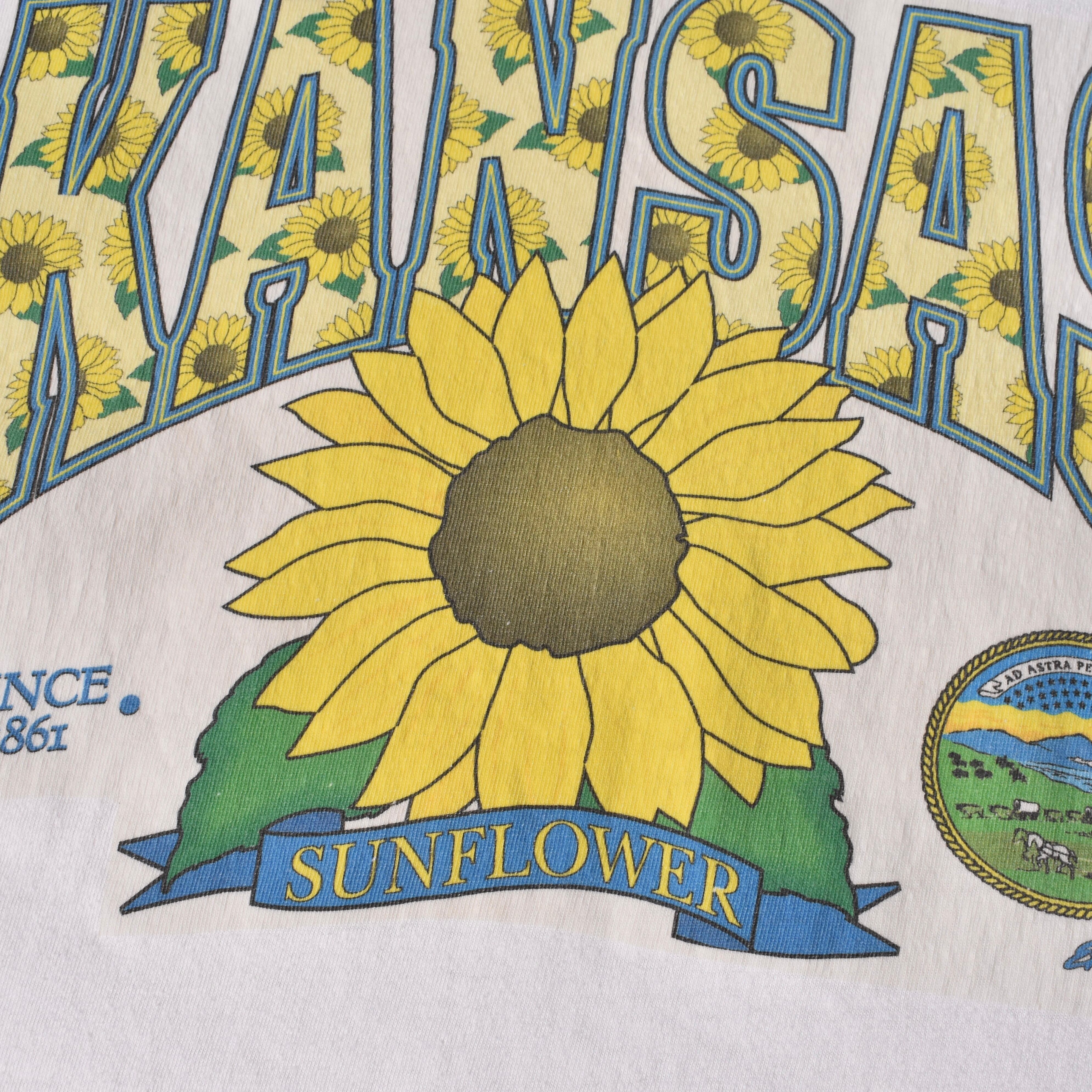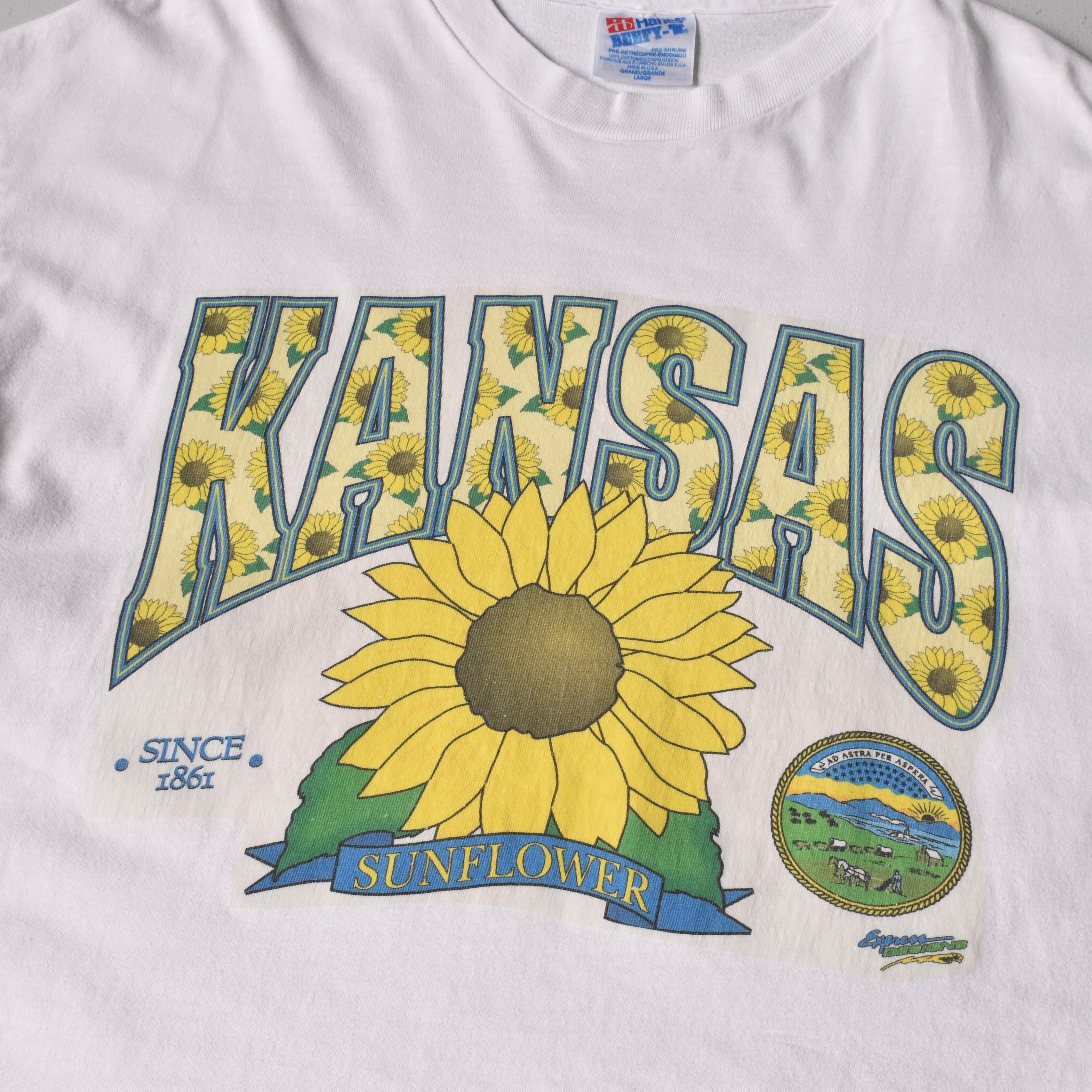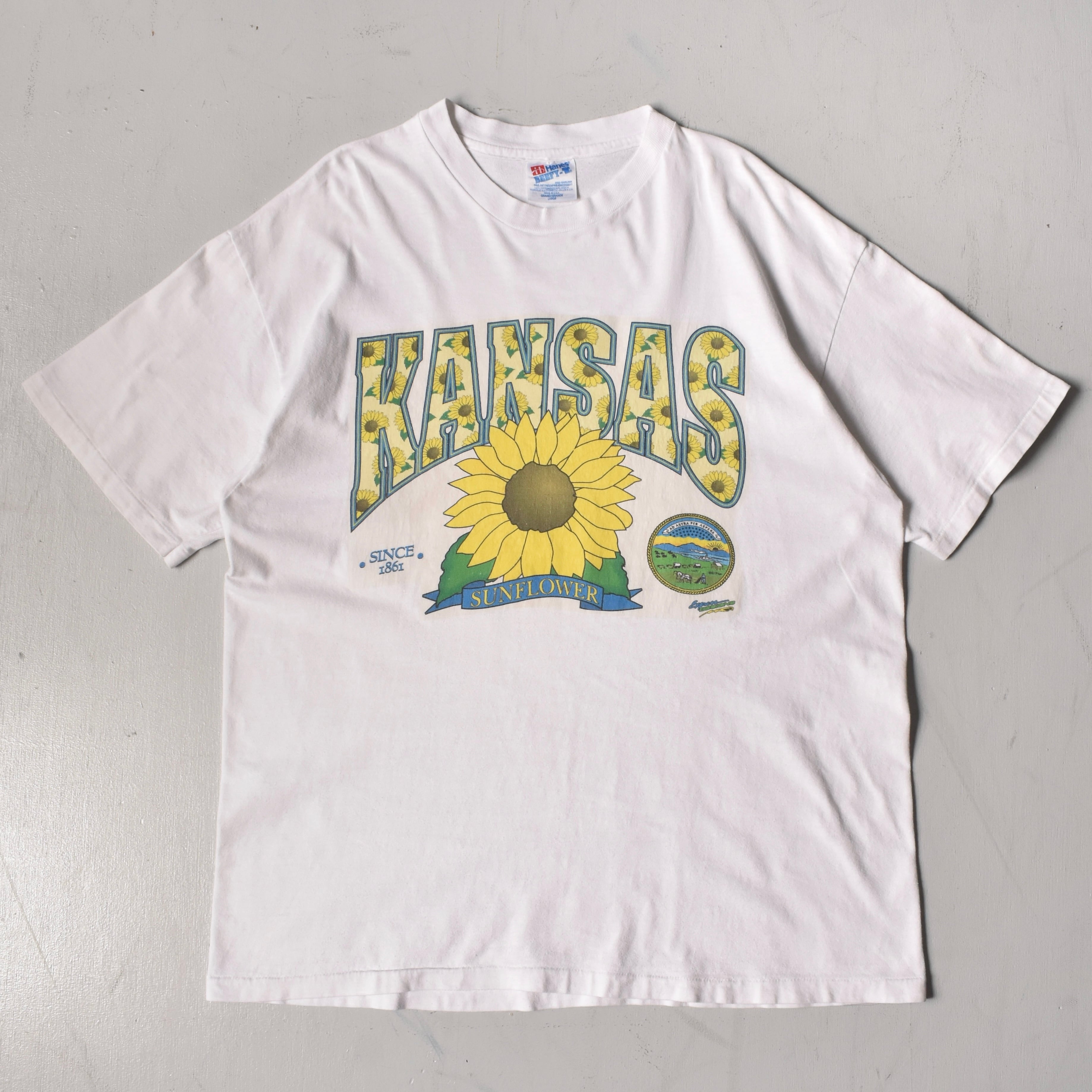【VINTAGE】 “SUNFLOWER” 『KANSAS』 90’s~ Made In USA Printed T-shirt s/s