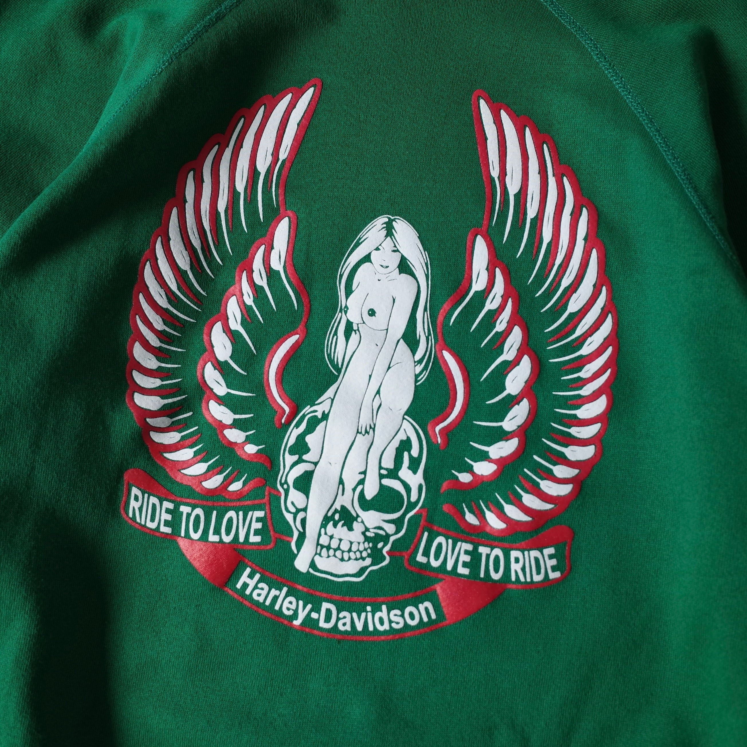 【VINTAGE】 "Harley Davidson" 80's~ 『Skullwing × Nudelady』 Bootleg Sweatshirt