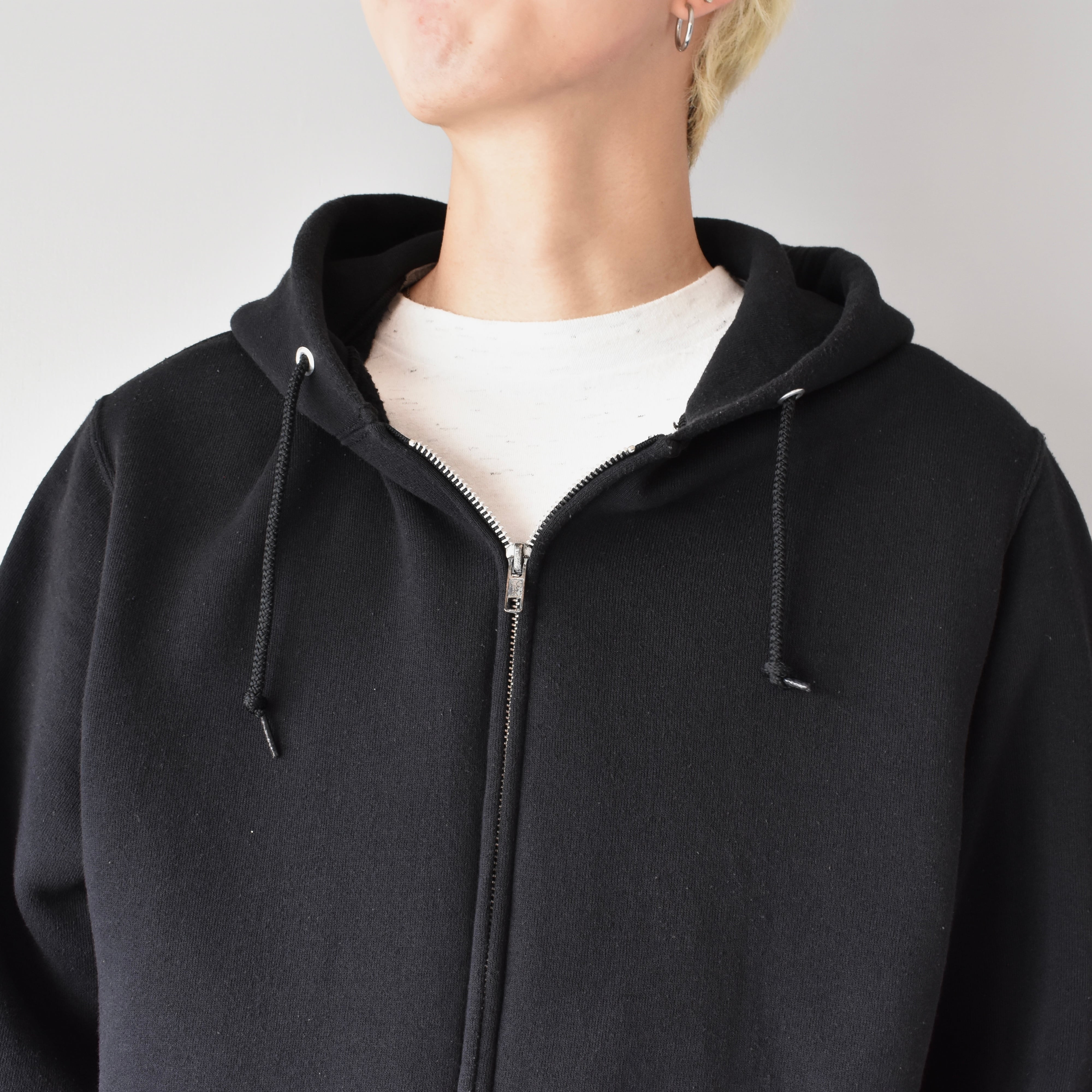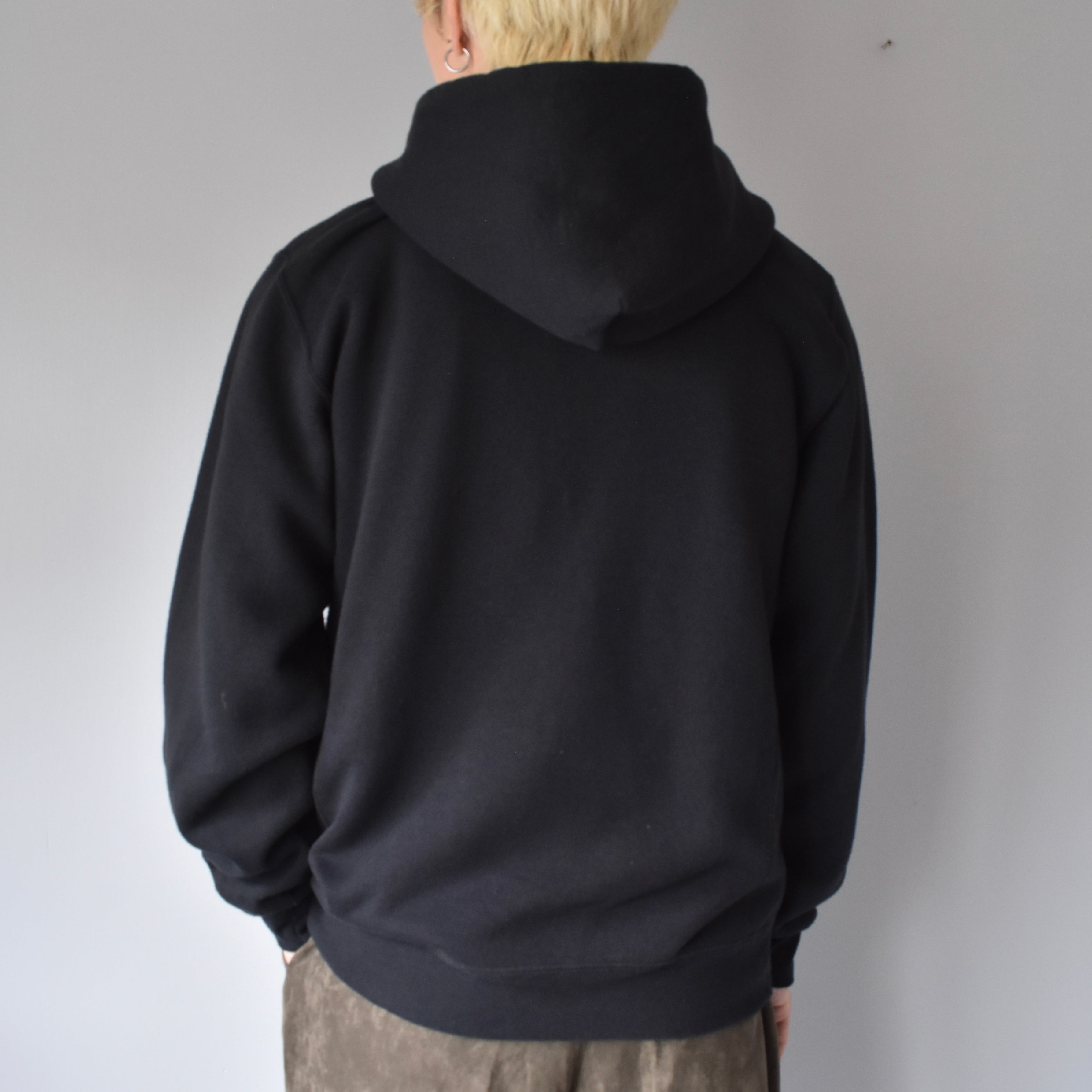 フーディー。汎用性高いブラック配色で様々なアイテムと