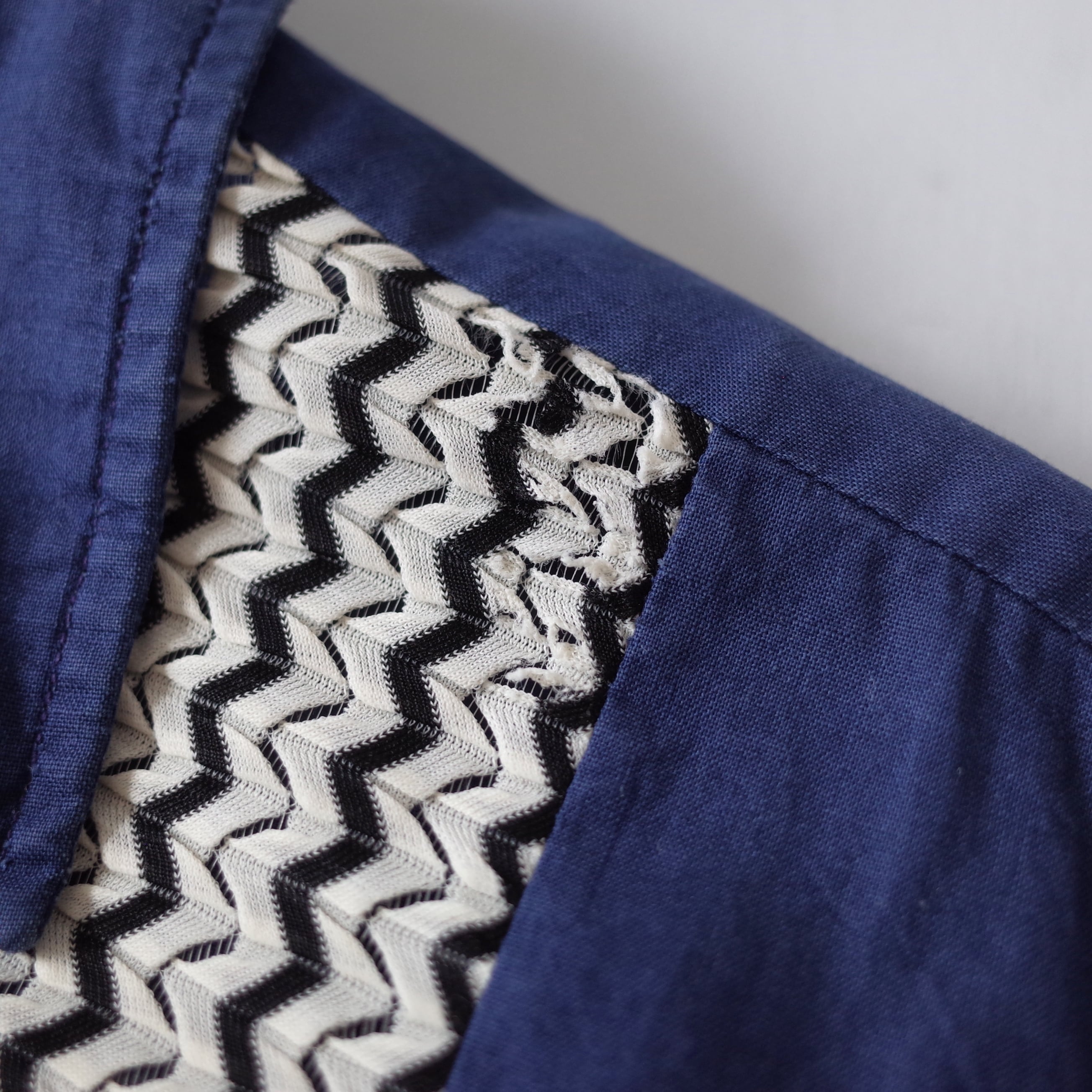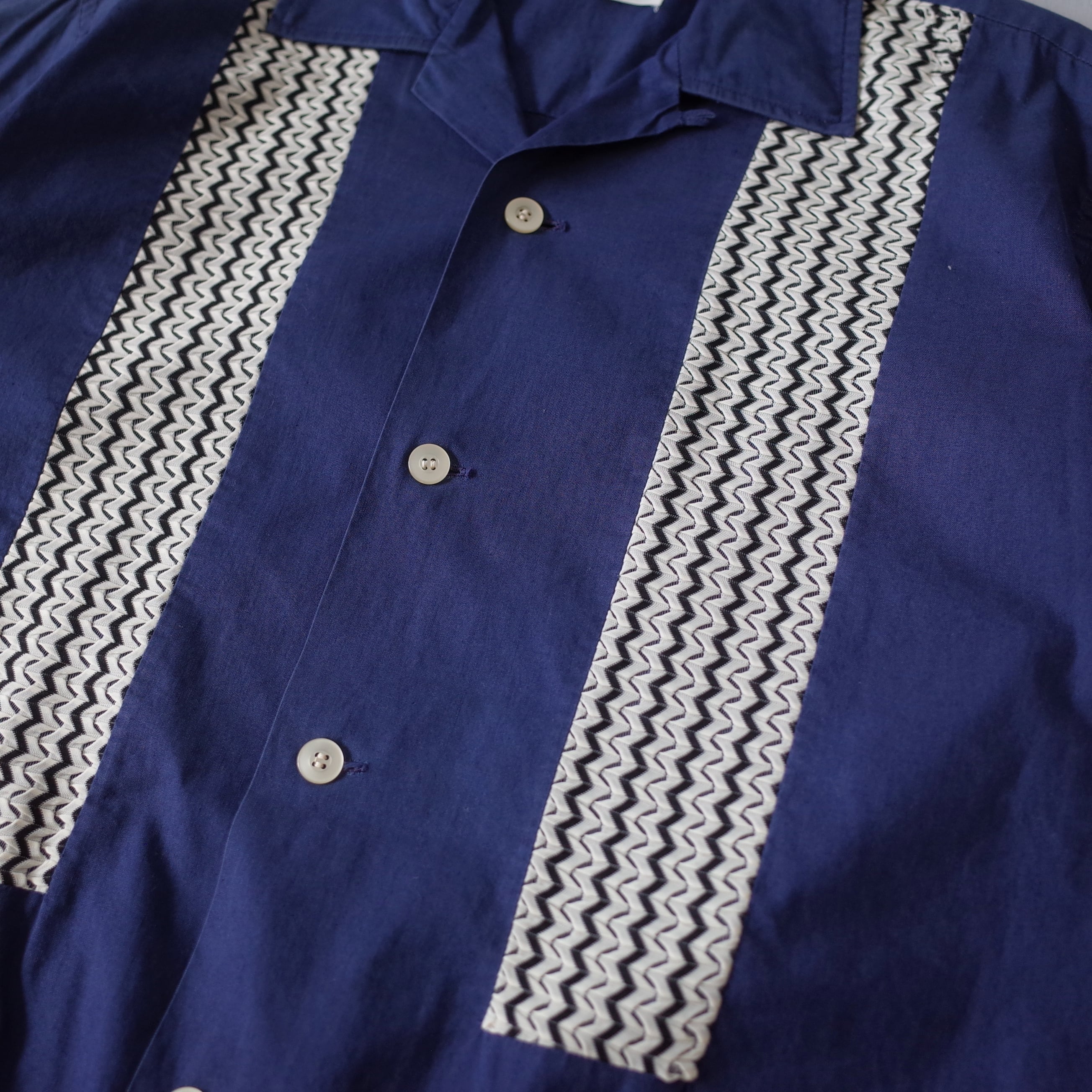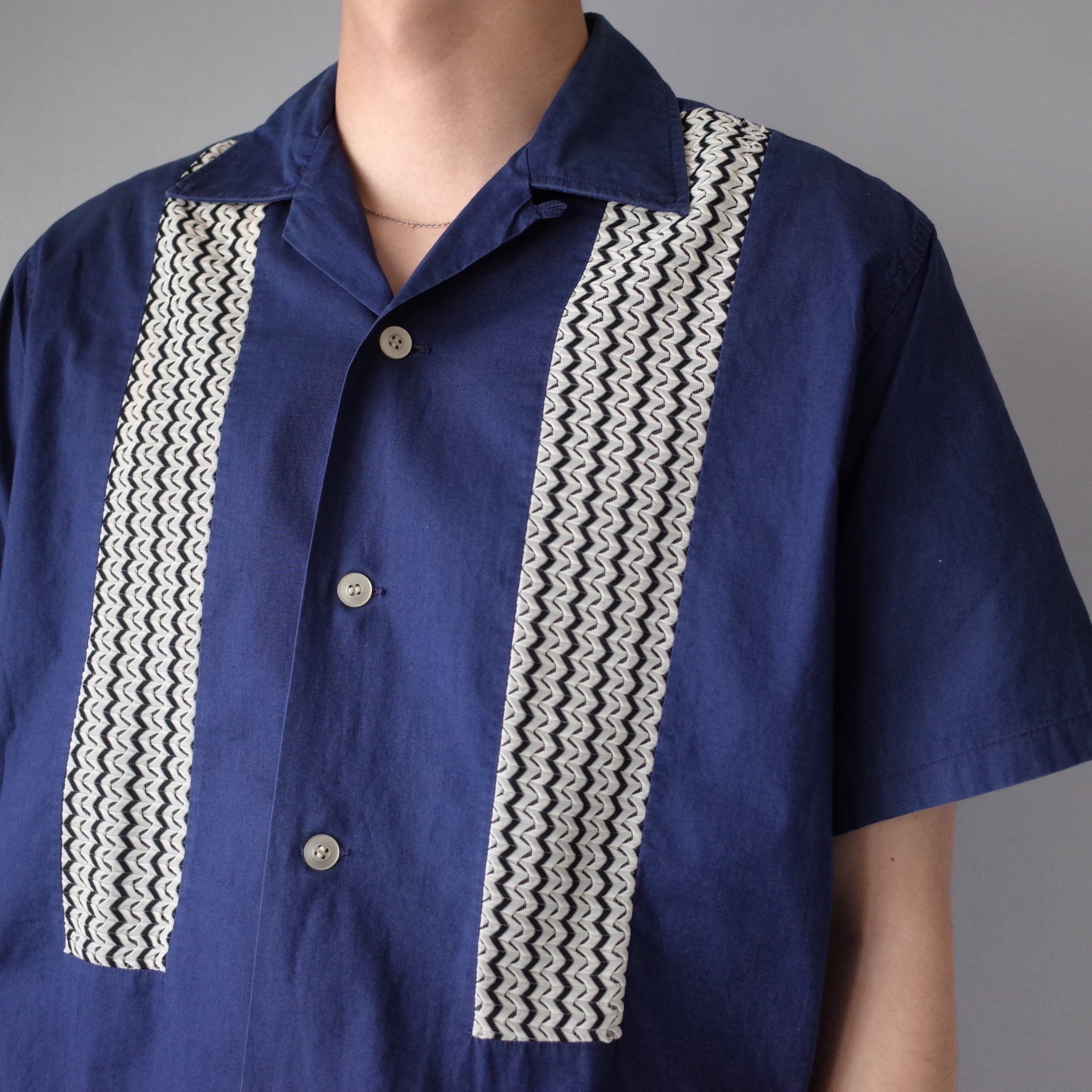 フロントにシアー地の切替がデザインされた開襟シャツ。