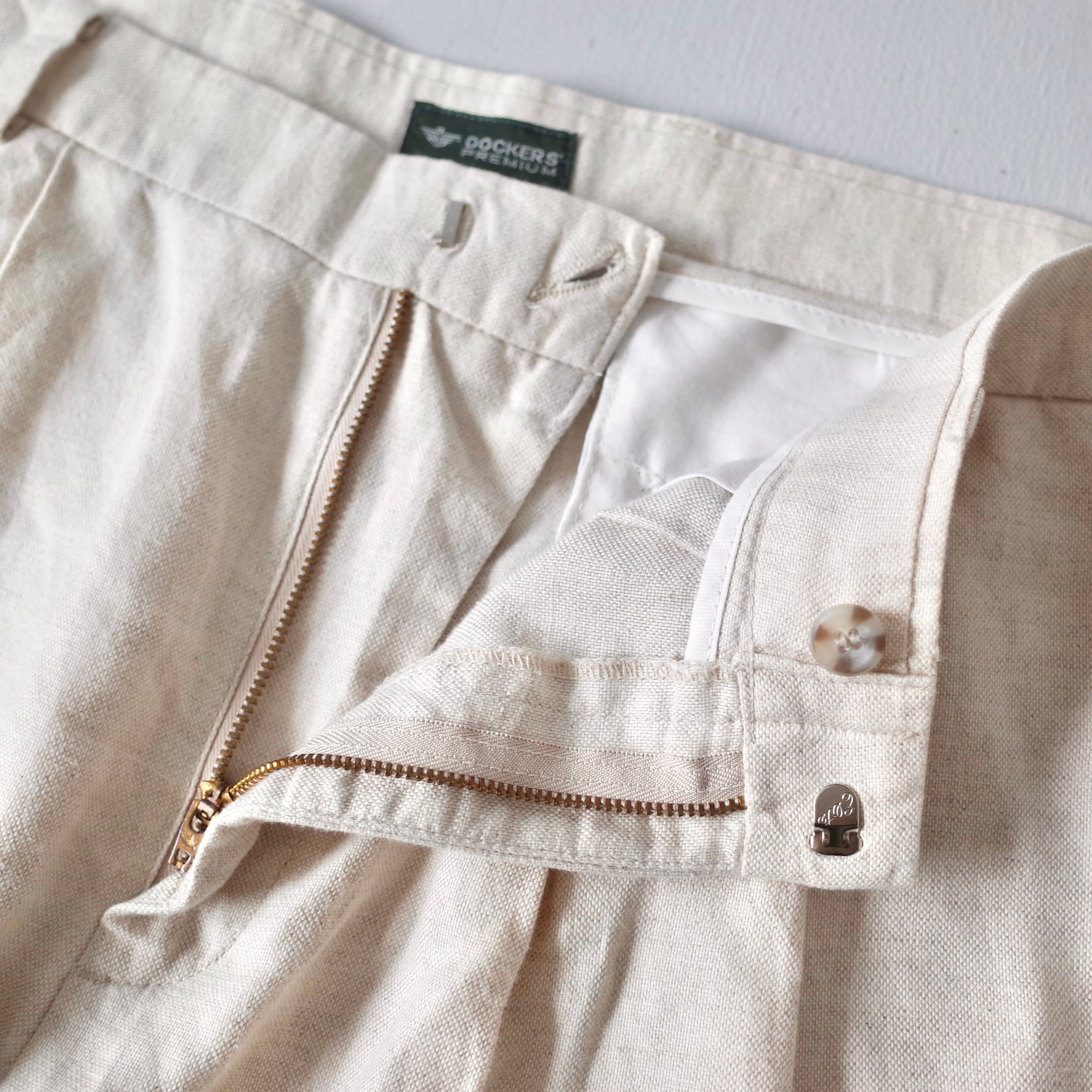"DOCKERS" Linen × Cotton Double-Tucks Trousers