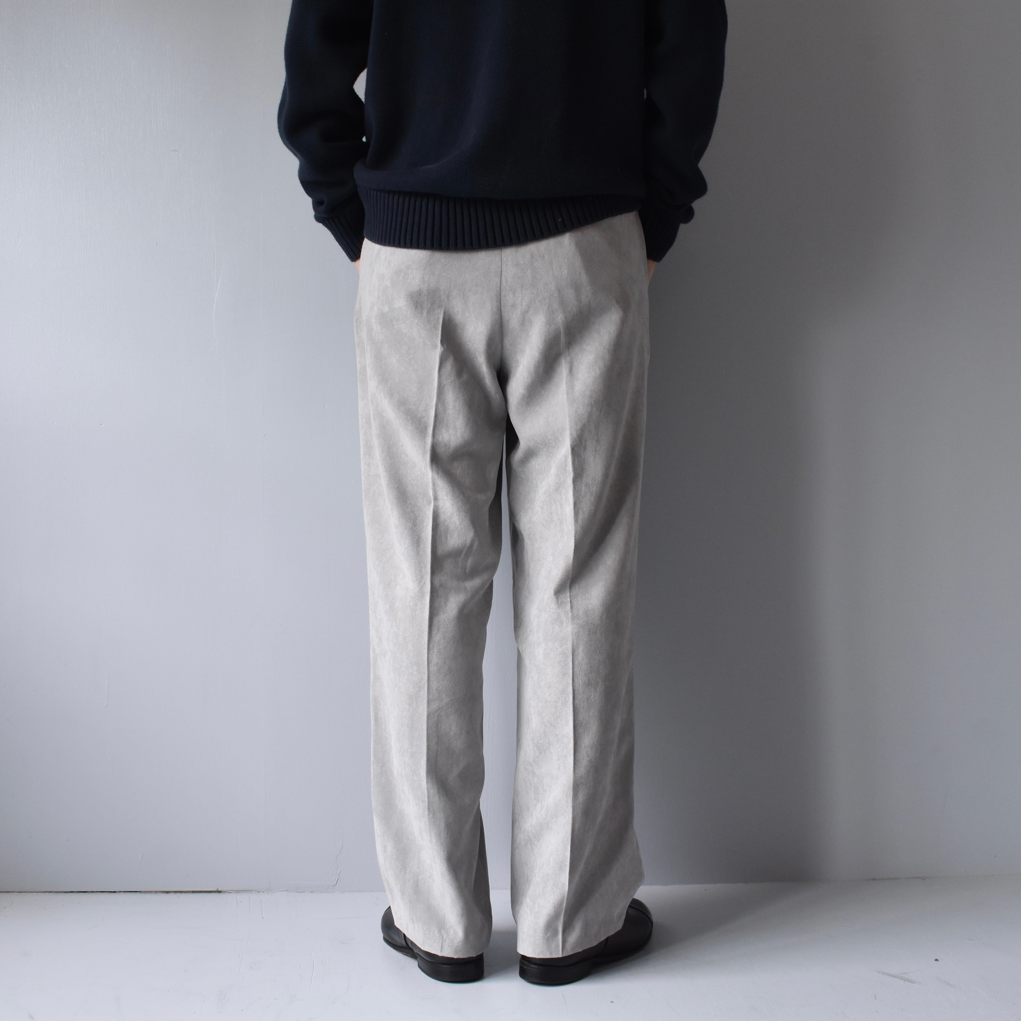 デッドストックで見つかった"PRONTI"ピーチスキン生地トラウザーズ。微起毛した柔らかい質感と滑らかさのある穿き心地はたまりません。