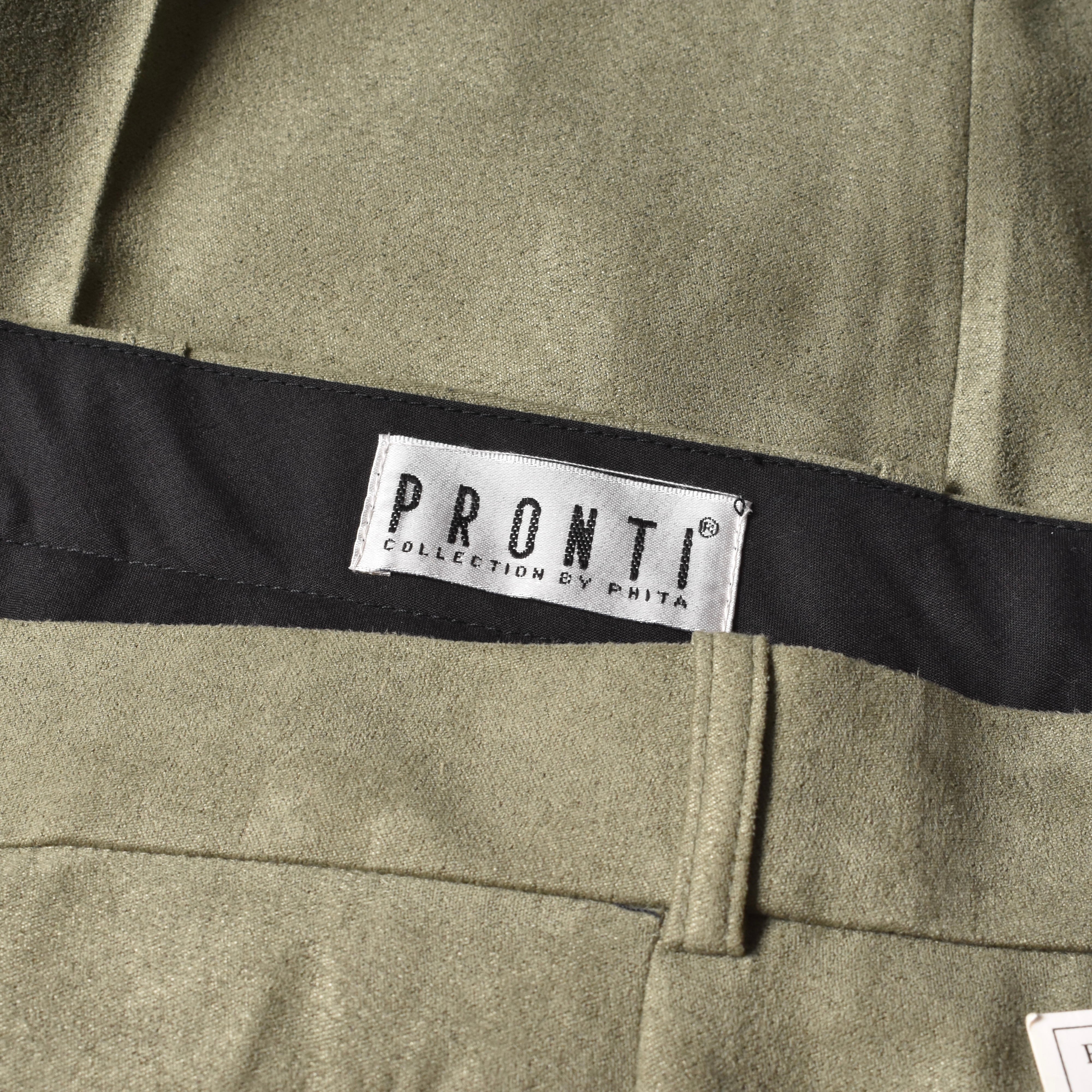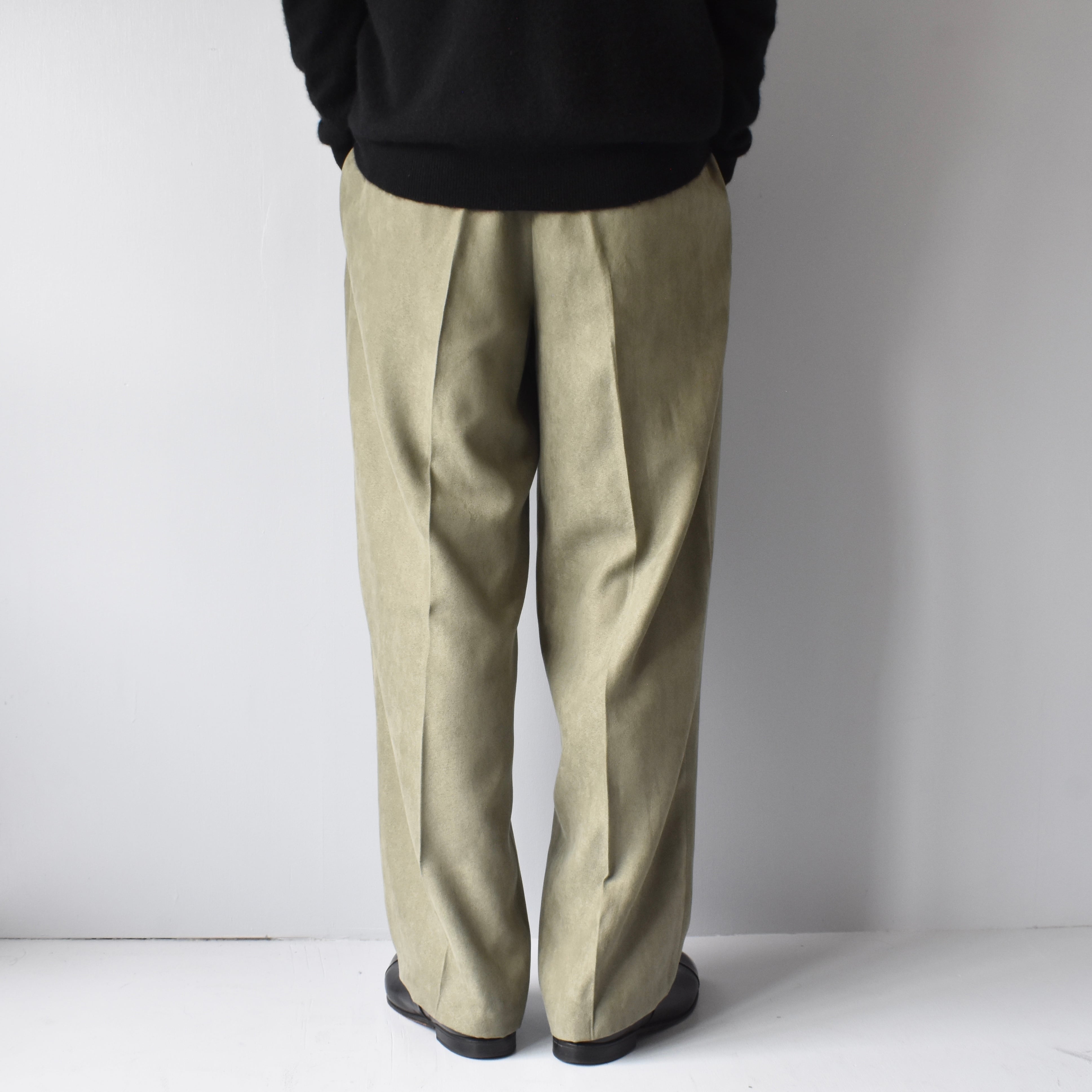 デッドストックで見つかった"PRONTI"ピーチスキン生地トラウザーズ。微起毛した柔らかい質感と滑らかさのある穿き心地はたまりません。
