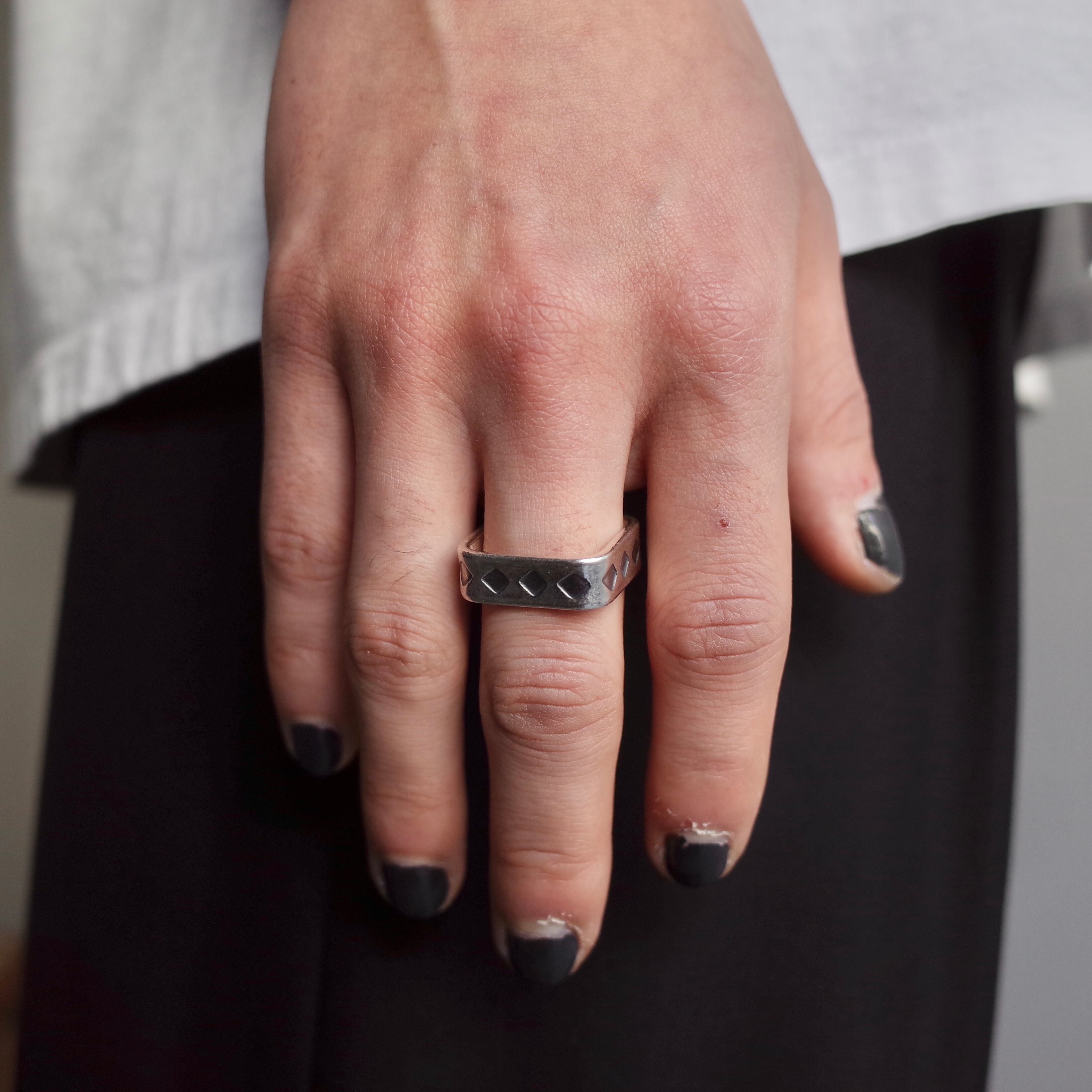 シルバーリング。民族ジュエリーらしい一癖あるデザインが